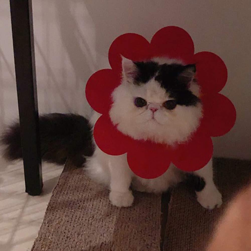【特価セール】KUVEELA PET 4枚 エリザベスカラー 猫用品 ドーナツカラー エリザベス フェルト生地 軽量 ソフト かわいい 去勢 避妊 湿疹 傷口なめ防止 掻き防止 爪切り レッド(4枚 、S) | gsmshop