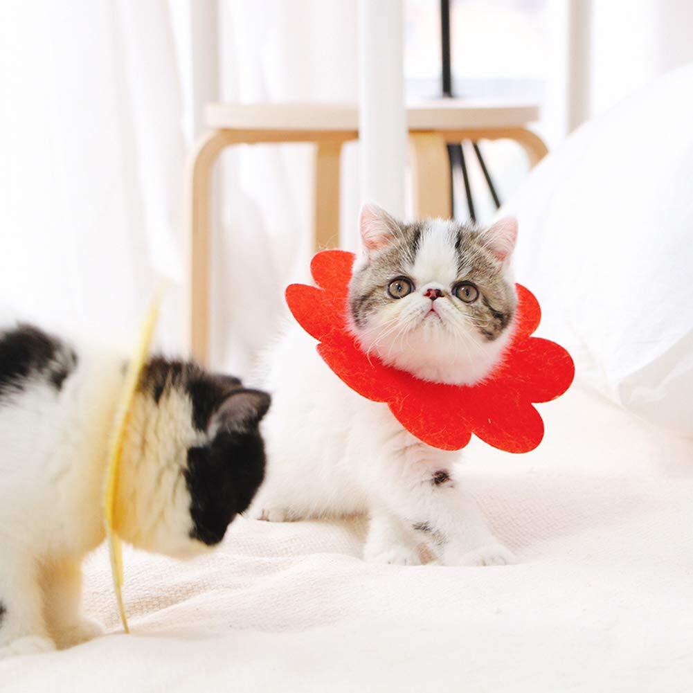 KUVEELA PET 4枚 エリザベスカラー 猫用品 ドーナツカラー エリザベス フェルト生地 軽量 ソフト かわいい 去勢 避妊 湿疹 傷口なめ防止 掻き防止 爪切り レッド(4枚 、S)