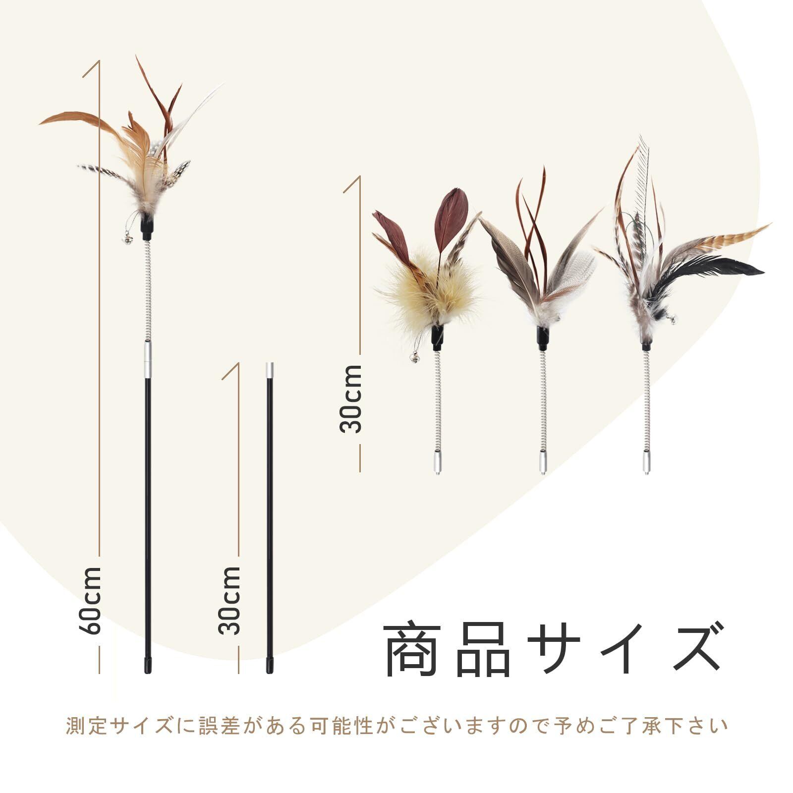 SONGWAY 猫おもちゃ羽 猫じゃらし 人気 羽根 ねこ玩具 天然羽 約60㎝長い竿