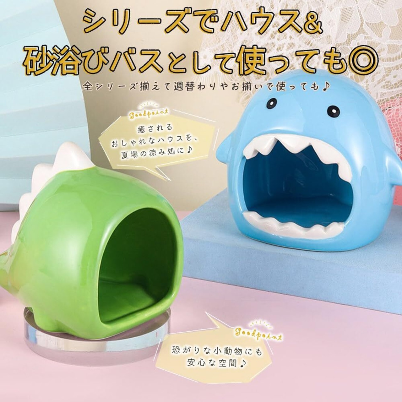 【 ペットが謎のモンスターに食べられてしまう!?ひんやり冷たい陶器のハムスターハウス 】 春夏の暑いシーズンに大活躍の、かわいい陶器のペットベッドハウスです。癒されるおしゃれなデザインのハウスを、夏場の涼み処にペットが顔を出す姿がたまらなくかわいい