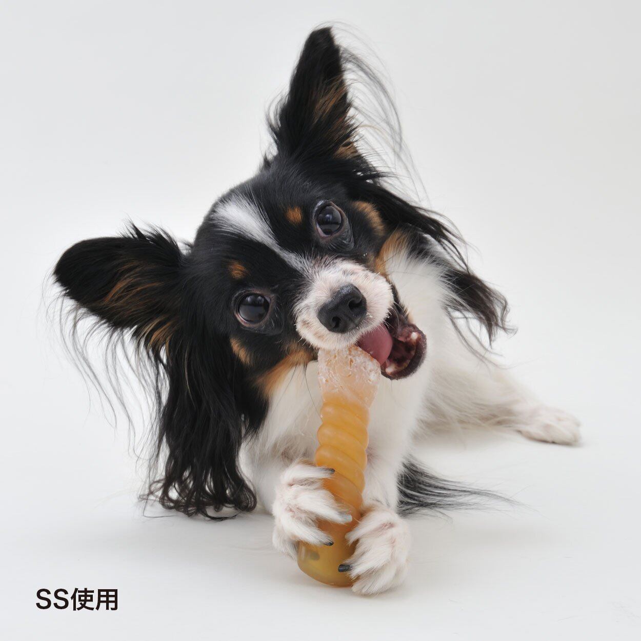 遊びながら、噛むことによって歯と歯ぐきの健康作りに役立ちます。“おもちゃ"ですが、トウモロコシを主原料としているので、愛犬が誤って小さなかけらを飲み込んでも無害です。