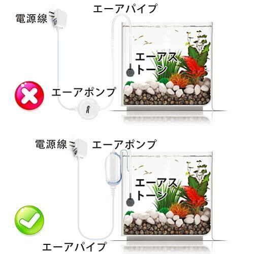 【固定用吸盤】パッケージ内容:エアーポンプ固定用吸盤 、9.15cmの透明ホースとマイクロエアーストーン。簡単なインストール手順,使用便利です。注意:水の逆流を防ぐため、エアーポンプは水面より上に設置してください。