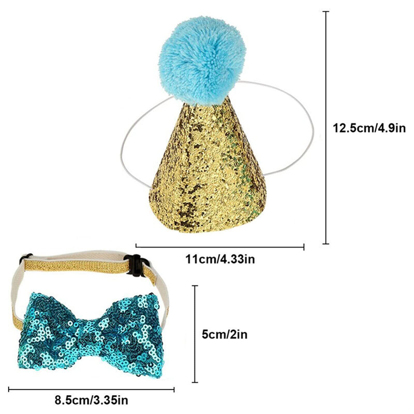 ペット用帽子 蝶ネクタイ 2点セット 猫 犬 誕生日帽子 数字付き キラキラ かわいい コスチューム 誕生日グッズ 誕生日 記念日 お祝い パーティー 写真撮影 (B ブルー)