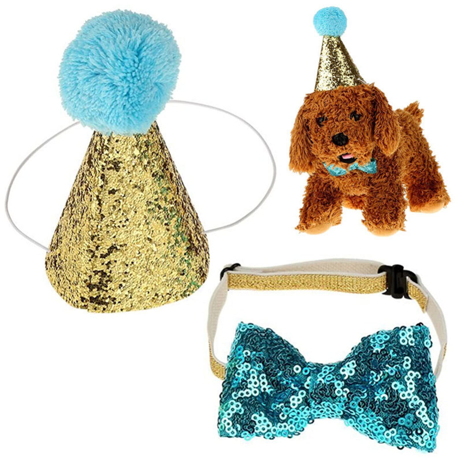 【新着商品】ペット用帽子 蝶ネクタイ 2点セット 猫 犬 誕生日帽子 数字付き キラキラ かわいい コスチューム 誕生日グッズ 誕生日 記念日 お祝い パーティー 写真撮影 (B ブルー) | gsmshop