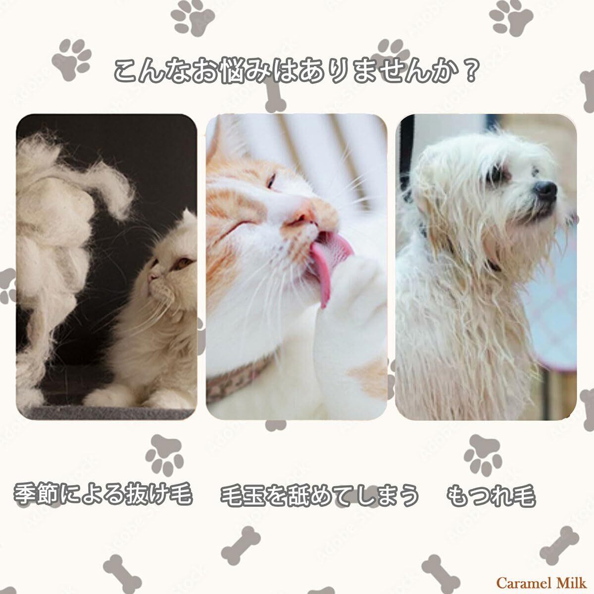 換毛期だけでなく、毎日のペットのお手入れに最適です。抜け毛取り、マッサージ、トリートメント、シャワー他にご活用ください。