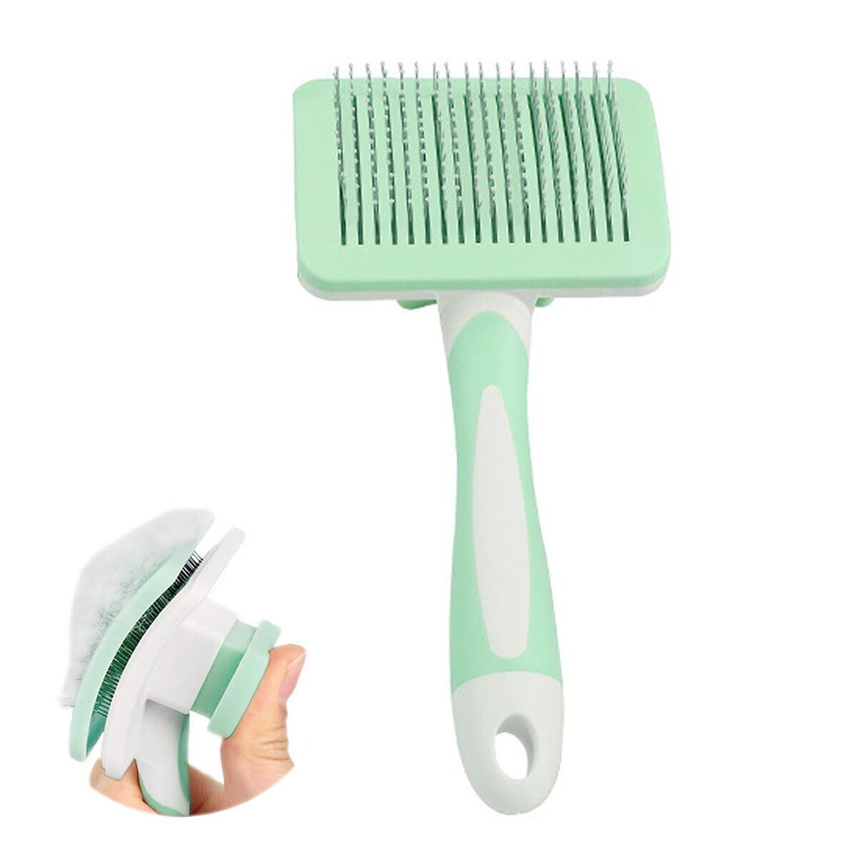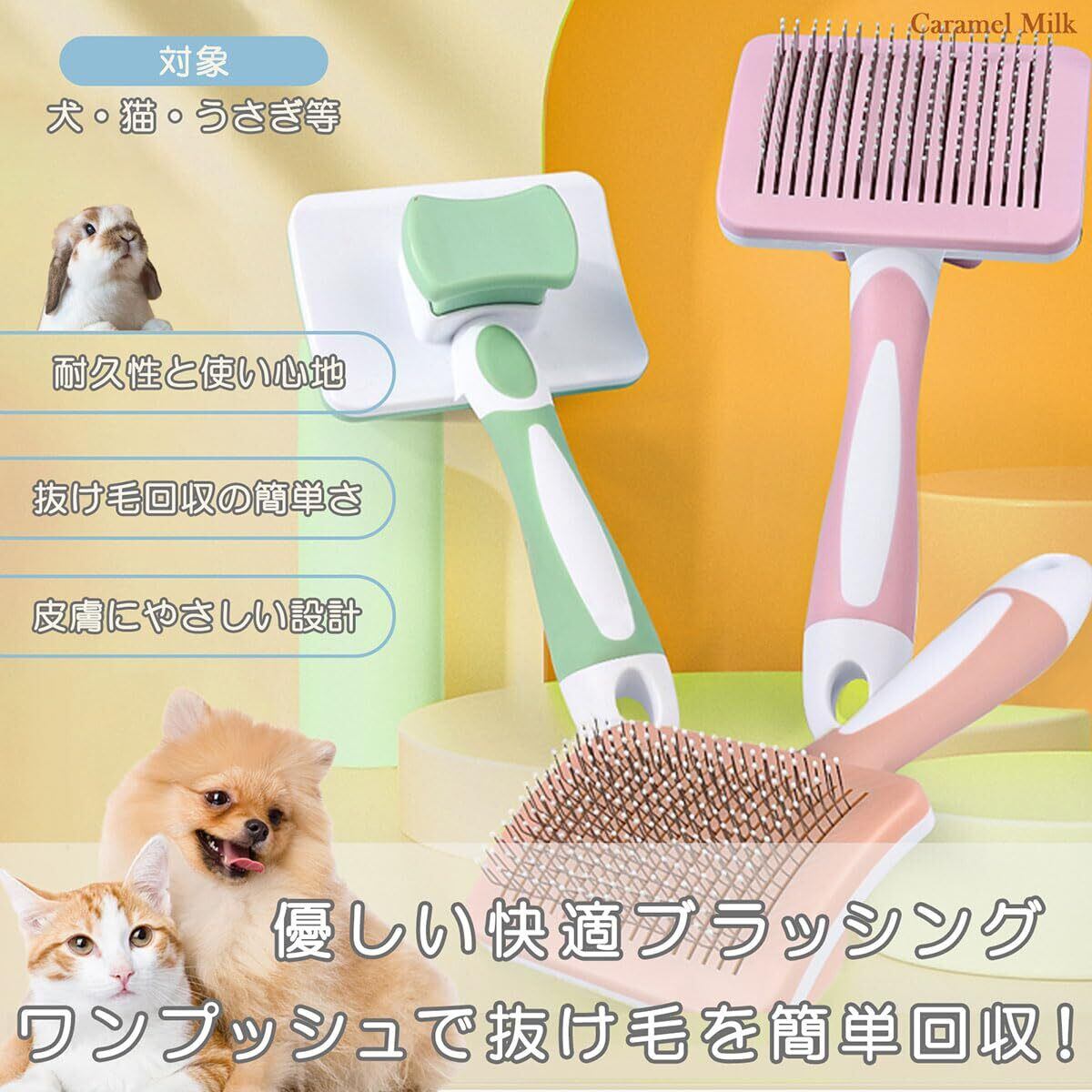 【在庫セール】[CARAMEL MILK] スリッカー 犬 猫 うさぎ ペット ブラシ 毛取り ワンプッシュ 肌ケア 収納 抜け毛 ブラッシング 毛玉 丸洗い 中毛 長毛 くし 痛くない (ミントグリーン) | gsmshop
