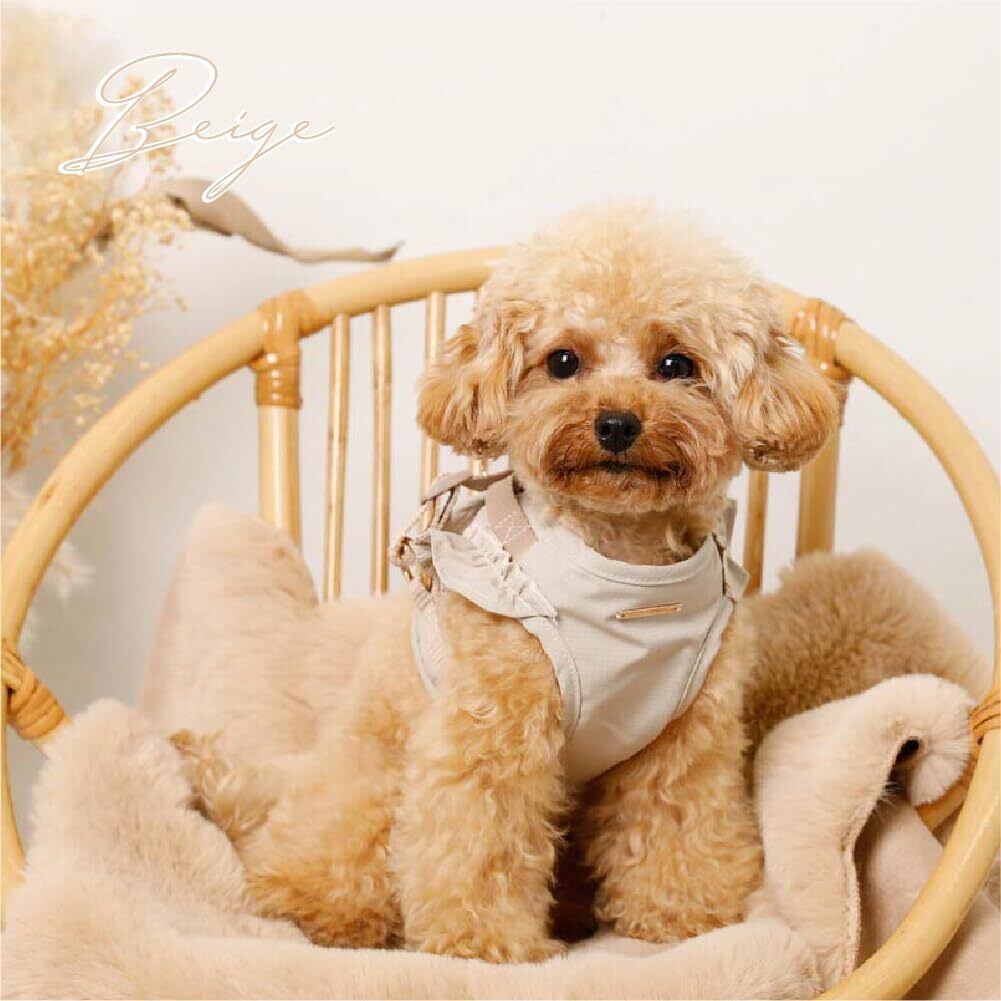 monchéri モンシェリ [ショルダーフリルハーネス+リードSET] 犬 ハーネス 小型犬 中型犬 (M/ベージュ) サイズ調節可能 ワンタッチ 着脱簡単 犬用 お散歩 お出かけ