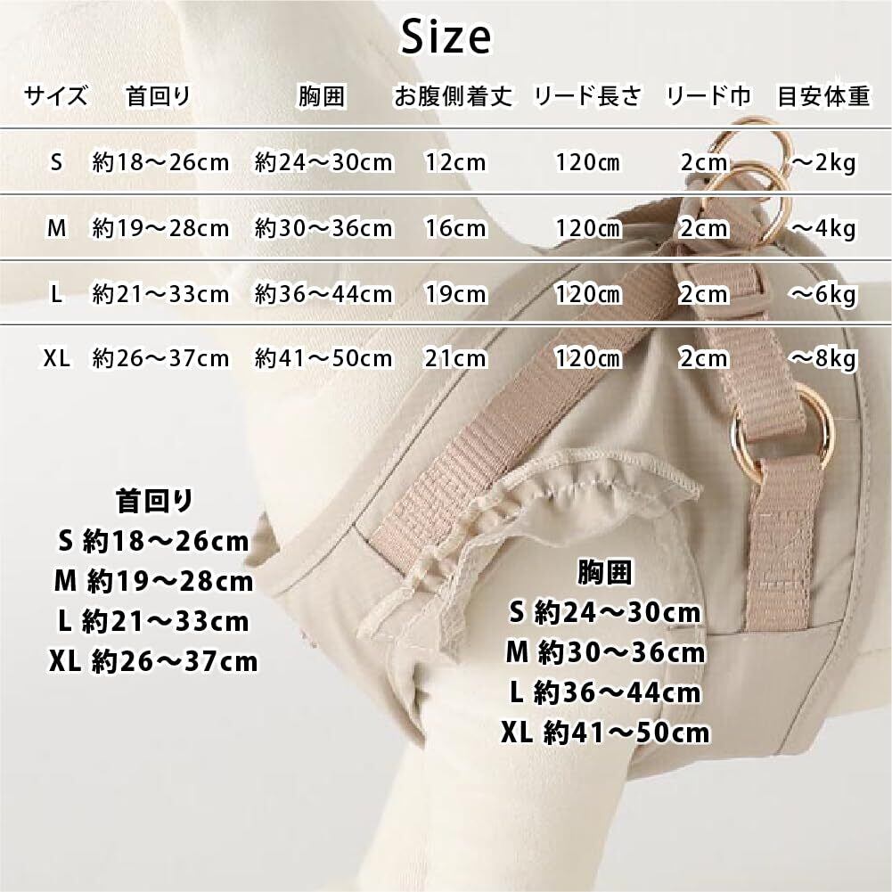 【フリルがおしゃれなハーネス】シンプルながらも肩元のフリルがガーリーに魅せてくれるデザインのハーネスと、リードがセットになって登場!カラバリ豊富な5色展開!内側は通気性の良いメッシュ生地を採用。オールシーズンでご使用いただけます。サイズもXLまでのご用意があり、愛犬ちゃんに合わせてサイズ選びが可能となっております。