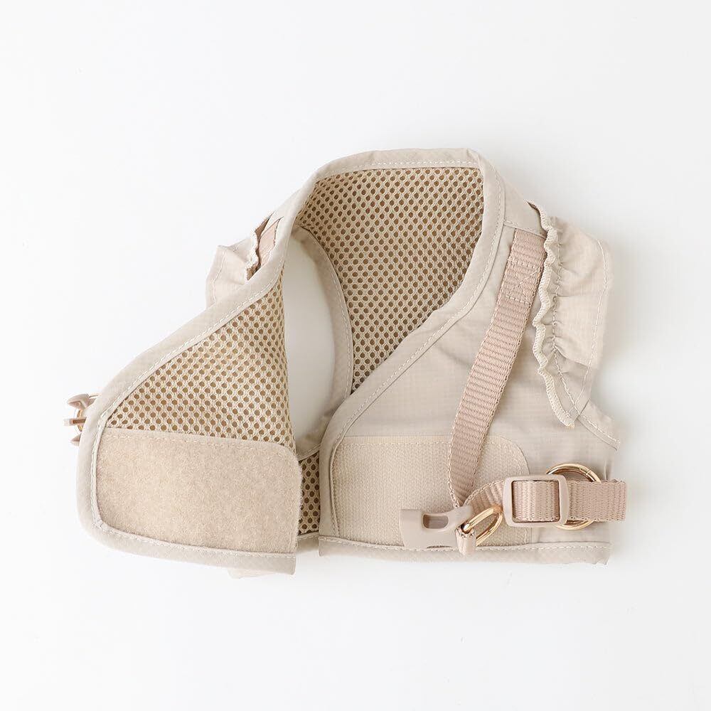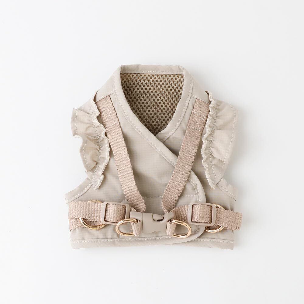 monchéri モンシェリ [ショルダーフリルハーネス+リードSET] 犬 ハーネス 小型犬 中型犬 (S/ベージュ) サイズ調節可能 ワンタッチ 着脱簡単 犬用 お散歩 お出かけ