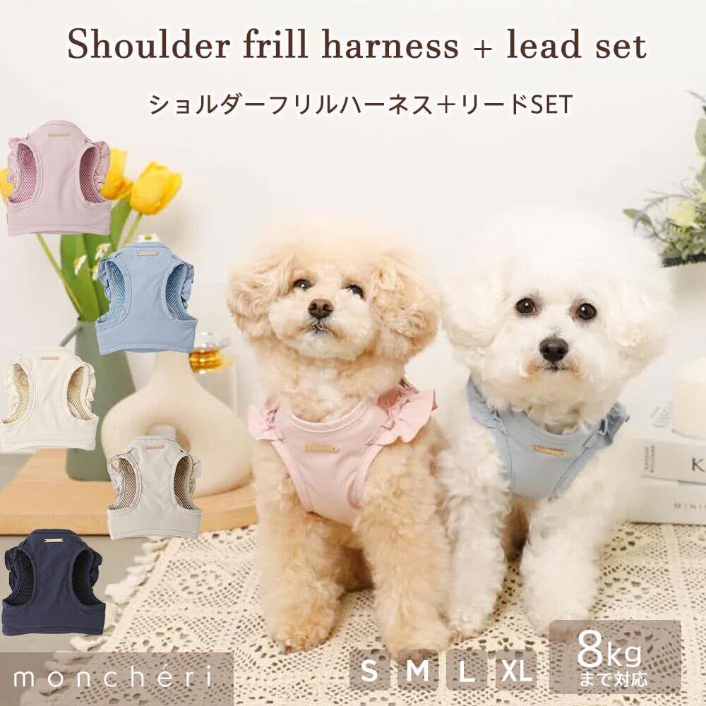 【新春セール】monchéri モンシェリ [ショルダーフリルハーネス+リードSET] 犬 ハーネス 小型犬 中型犬 (S/ベージュ) サイズ調節可能 ワンタッチ 着脱簡単 犬用 お散歩 お出かけ | gsmshop