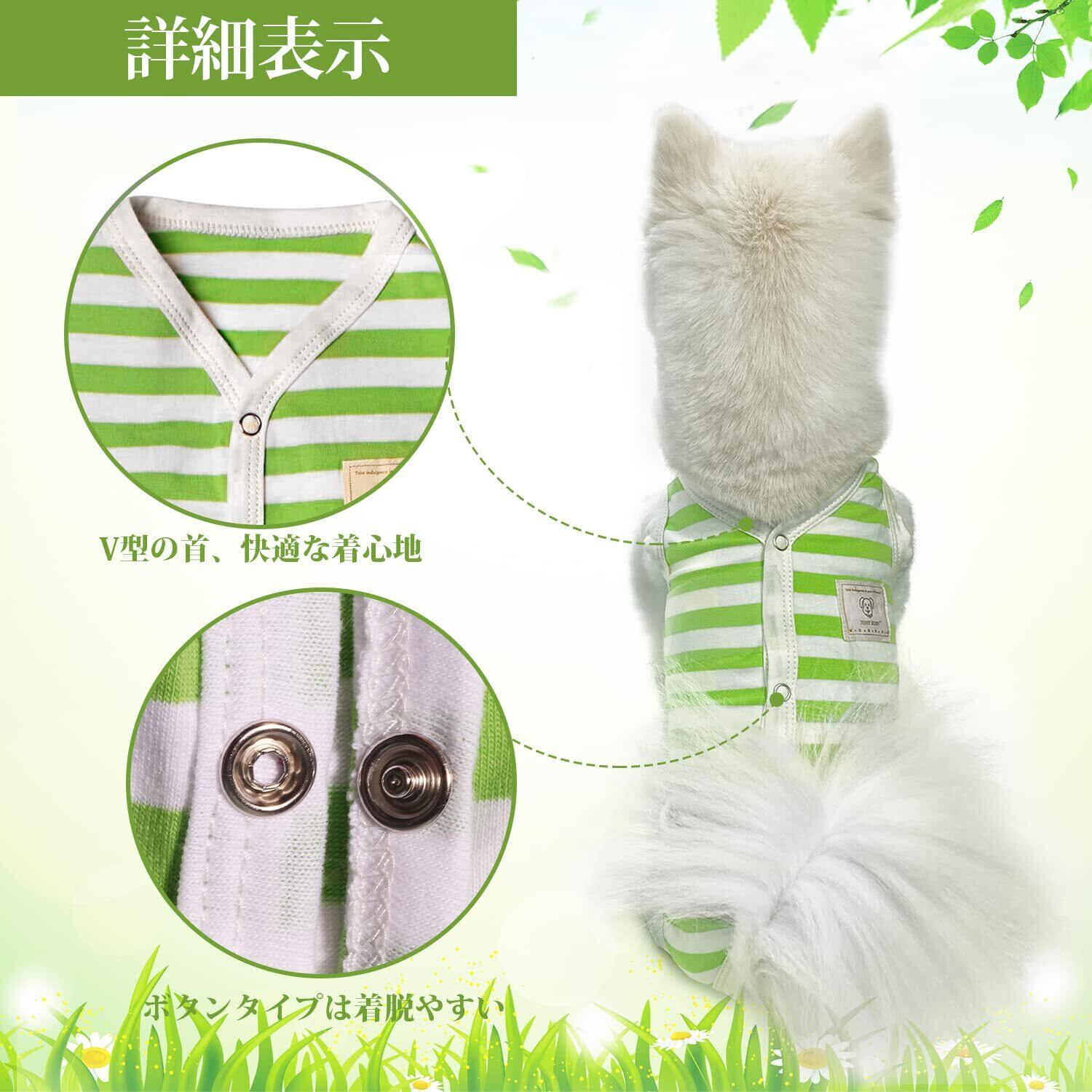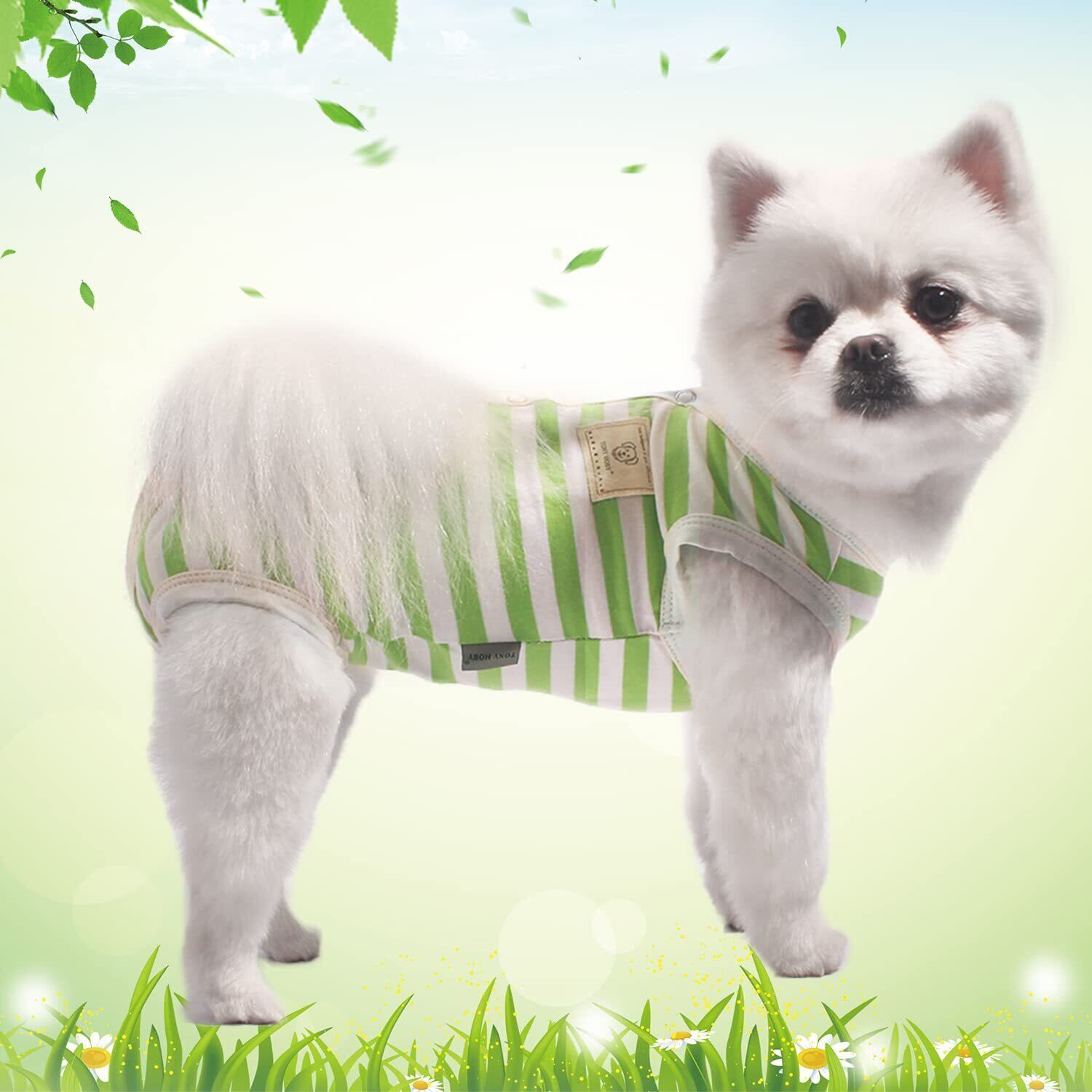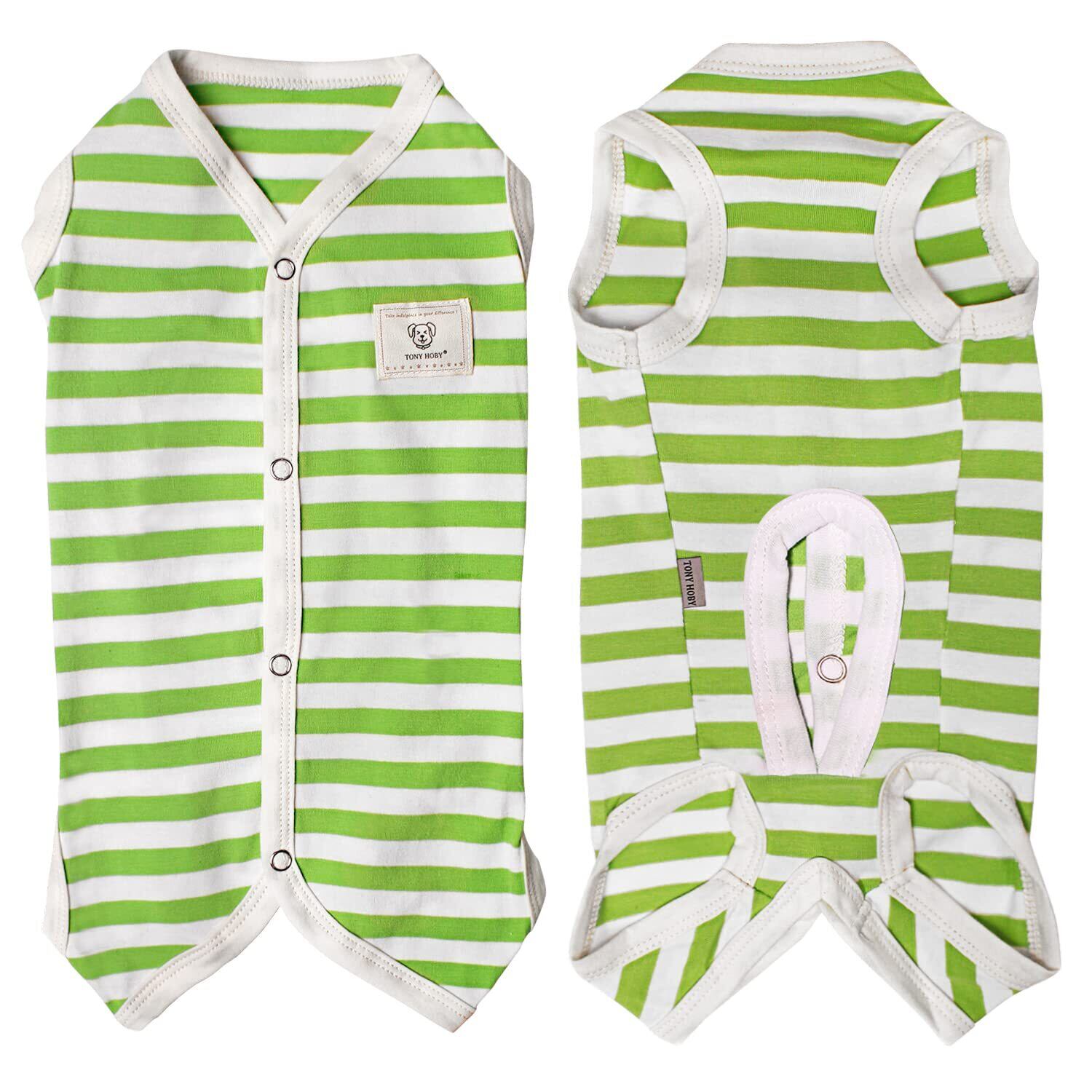 TONY HOBY 男女わけ 犬のパジャマ 薄い 夏用 犬の術後服 100%コットン生地 小型犬服 犬用Tシャツ グリーン