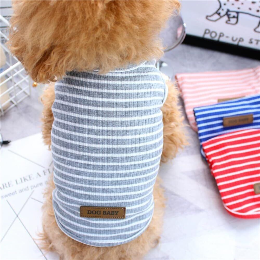 YBGGJO 犬服 ストライプ Tシャツ タンクトップ 小型犬用 夏 おしゃれ かわいい 柔らかい 涼しい 脱毛保護 犬猫洋服 ペット服 (グレー, L)