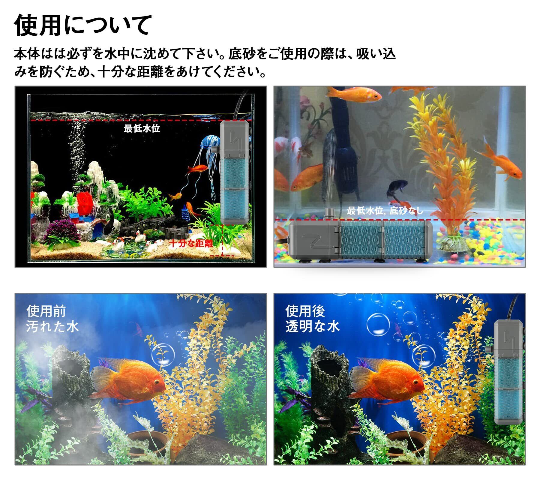 水中ポンプ 小型 水槽ポンプ 9W 水槽フィルター 酸素供給/ろ過/水循環機能/水流発生/排水5 in 1ウォーターポンプ 流量800L/H 揚程1.1M 40-60CM水槽適用 空気量/流量調節できる 観賞魚飼育専用 2023新型 日本語説明書付き