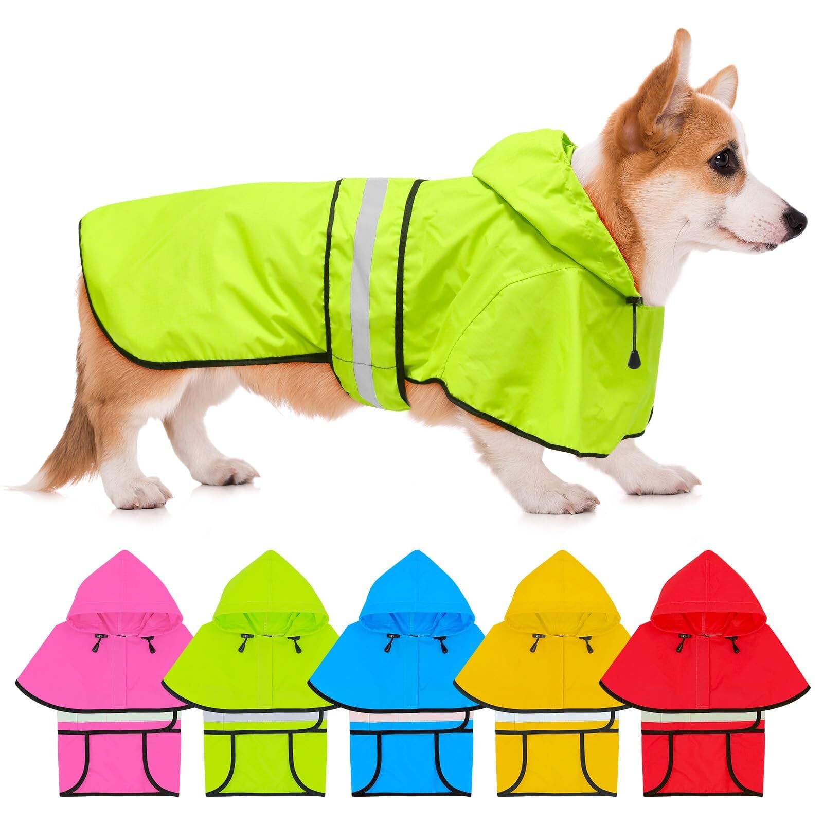 【数量限定】Dolitego 犬用レインコート- 防水調節可能な反射型犬用レインコートジャケット, 小型犬中型犬大型犬 軽量 通気性 ポンチョスリッカー 帽子付 散歩用 防水 着脱簡単 梅雨対策 犬 レインコート (S, 绿色) | gsmshop