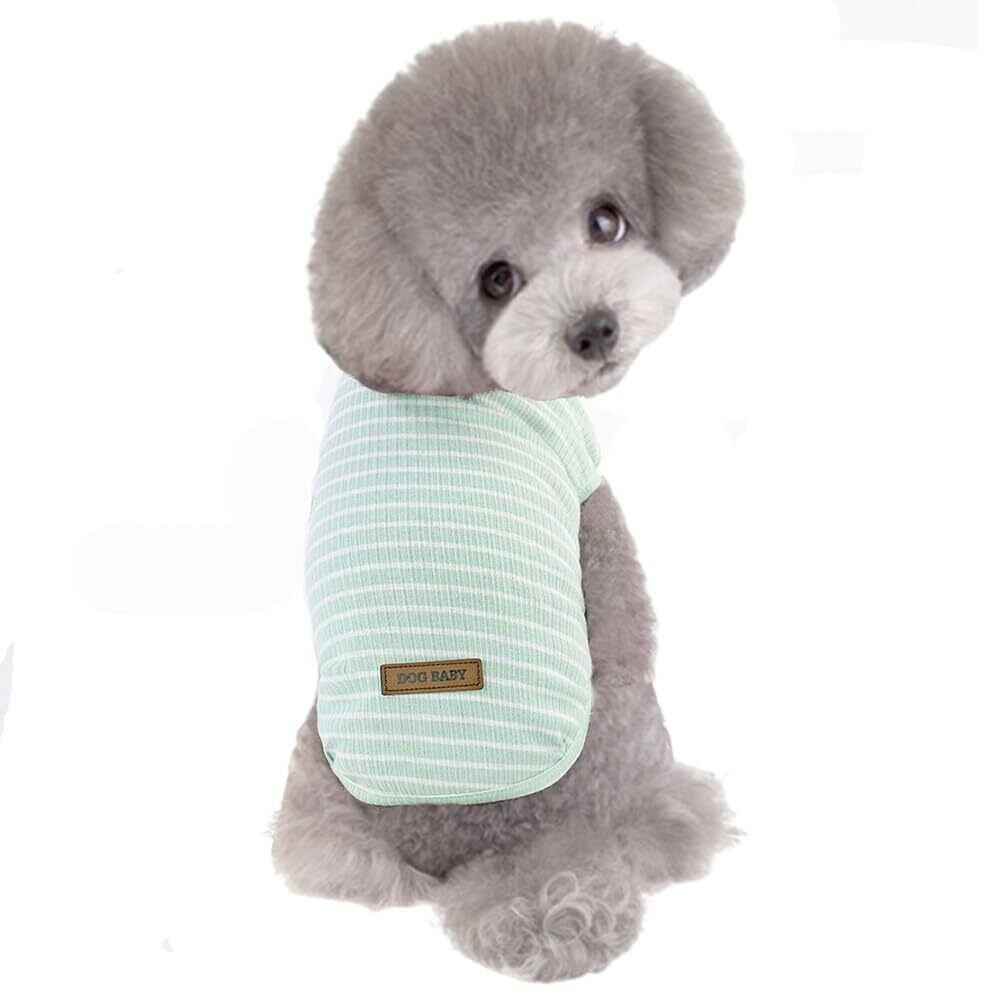 YBGGJO 犬服 ストライプ Tシャツ タンクトップ 小型犬用 夏 おしゃれ かわいい 柔らかい 涼しい 脱毛保護 犬猫洋服 ペット服 (緑色, XL)