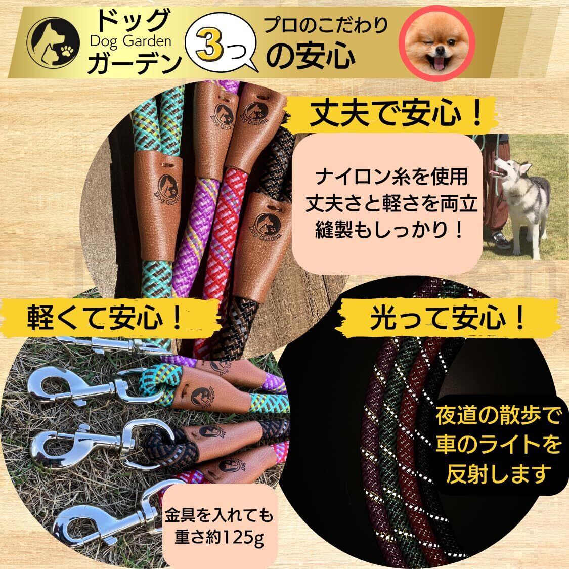 DogGarden 軽量リード 【ドッグトレーナー監修】小型犬用 1.0cm×130cm 持ちやすい 夜間反射 ロープ トレーニング (パープル)