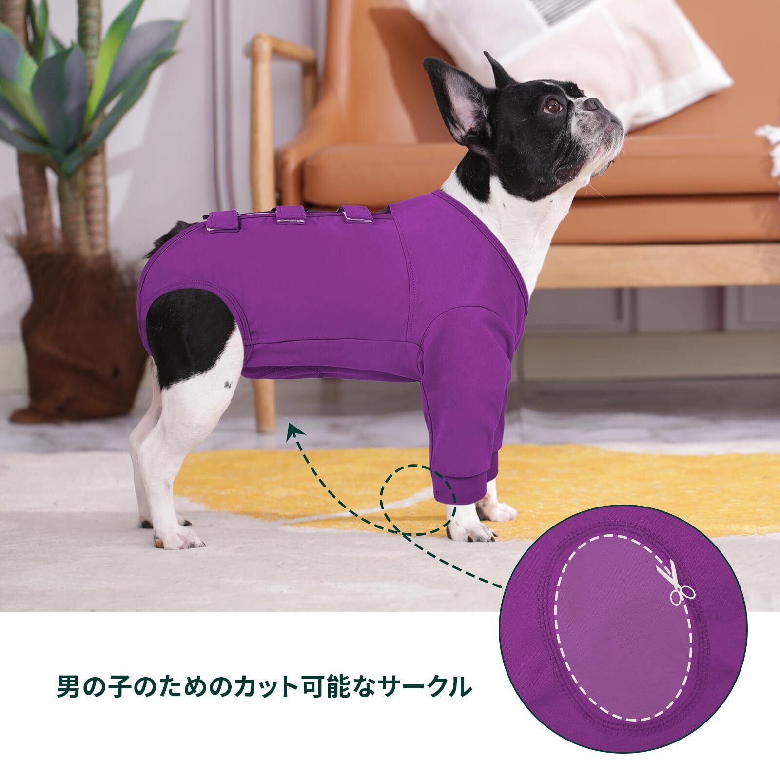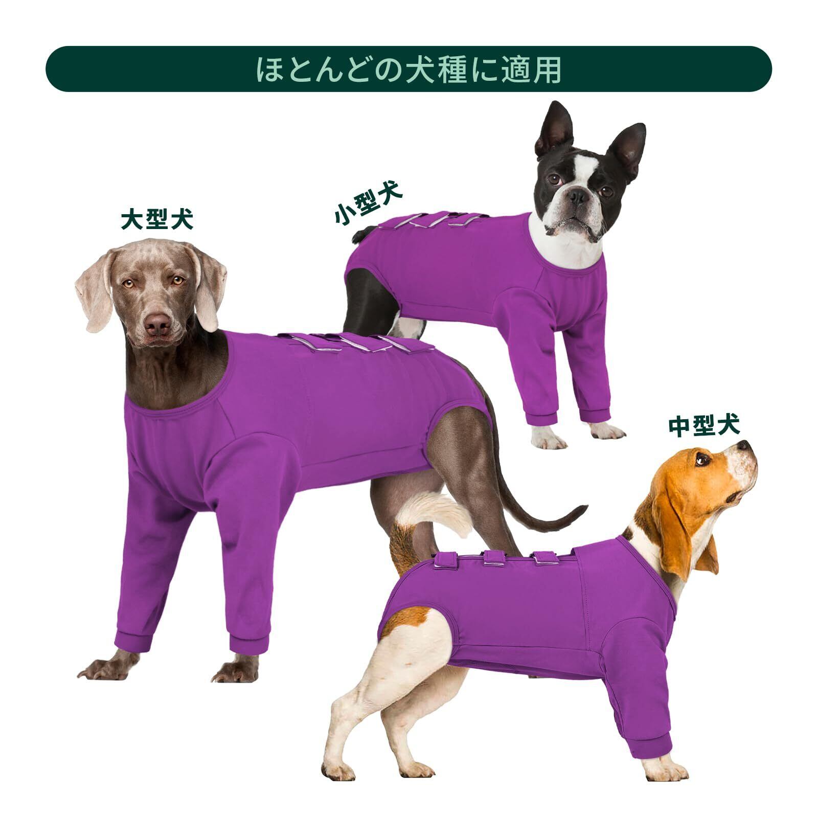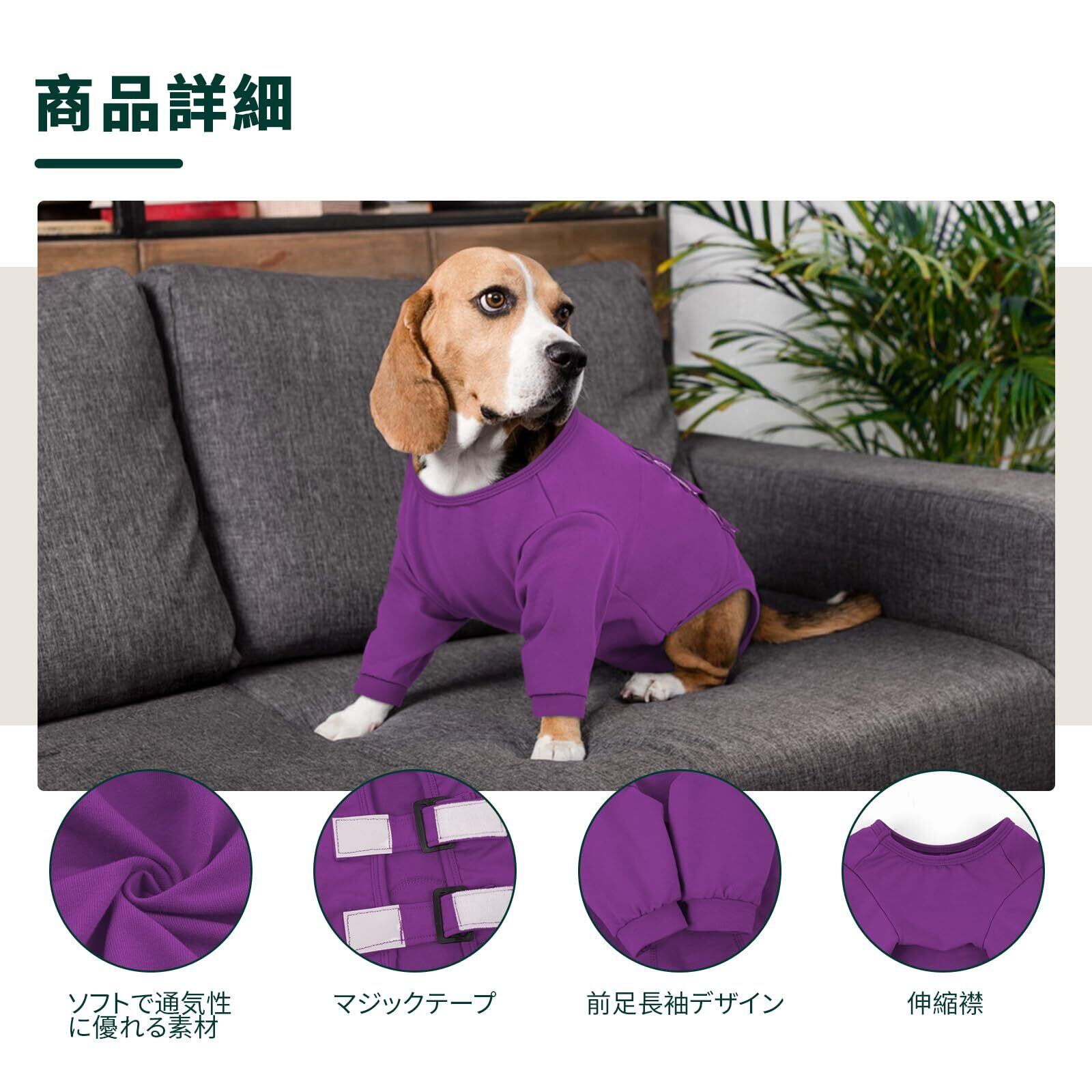 Kuoser犬用術後ウェア 前足用術後回復服 長袖 マジックテープ 着脱簡単 調節可能 ソフト 通気 伸縮素材 無地 パープルM