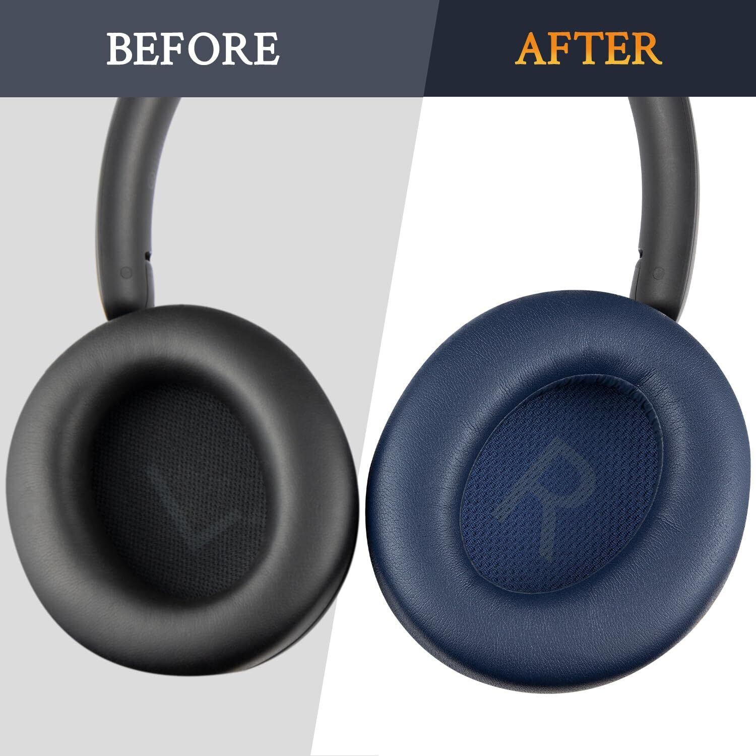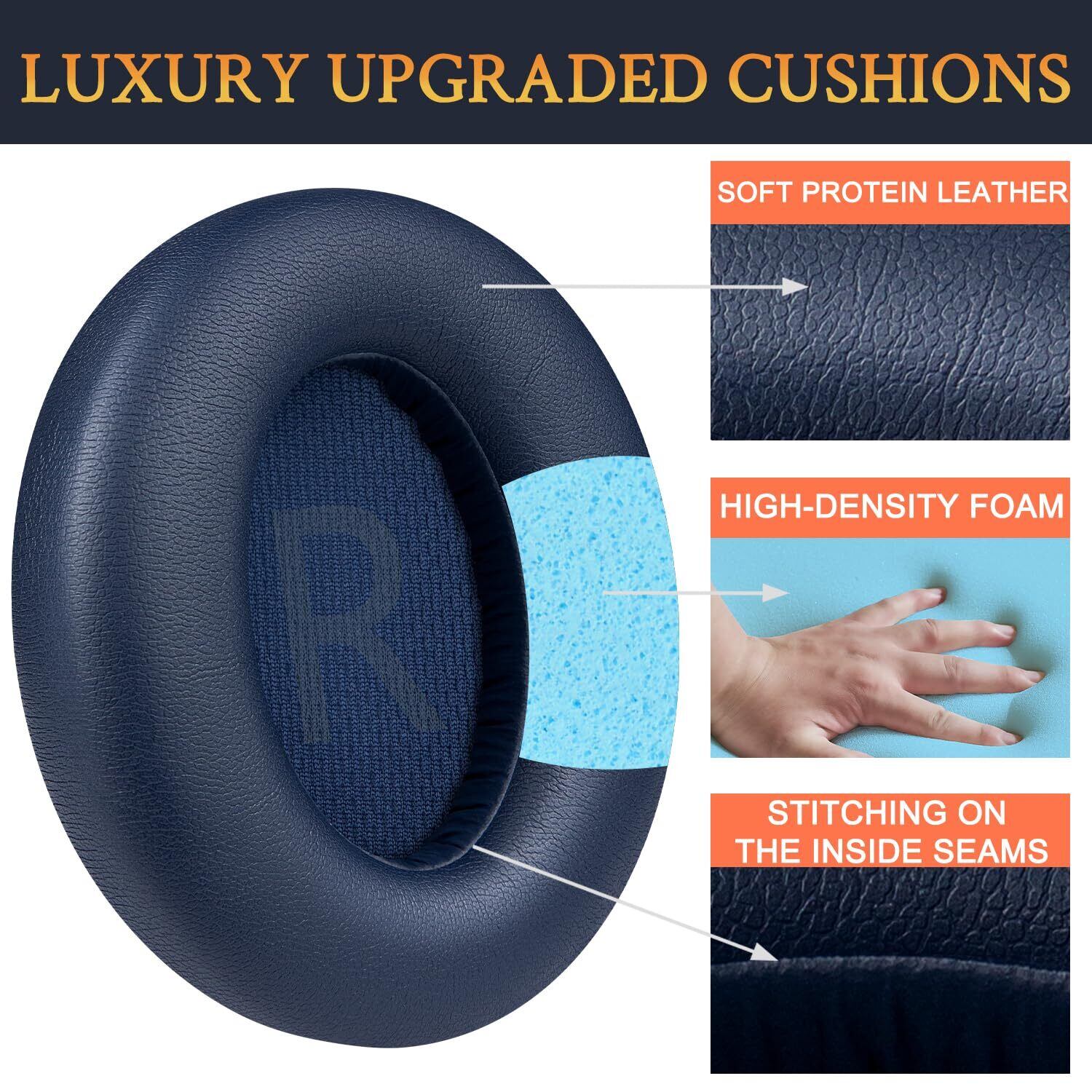 SOULWIT イヤーパッド イヤークッション for Anker Sound-core Space Q45との互換性があり 柔らかいプロテインレザー イヤーカップ ノイズアイソレーションフォーム ヘッドパッド - ブルー