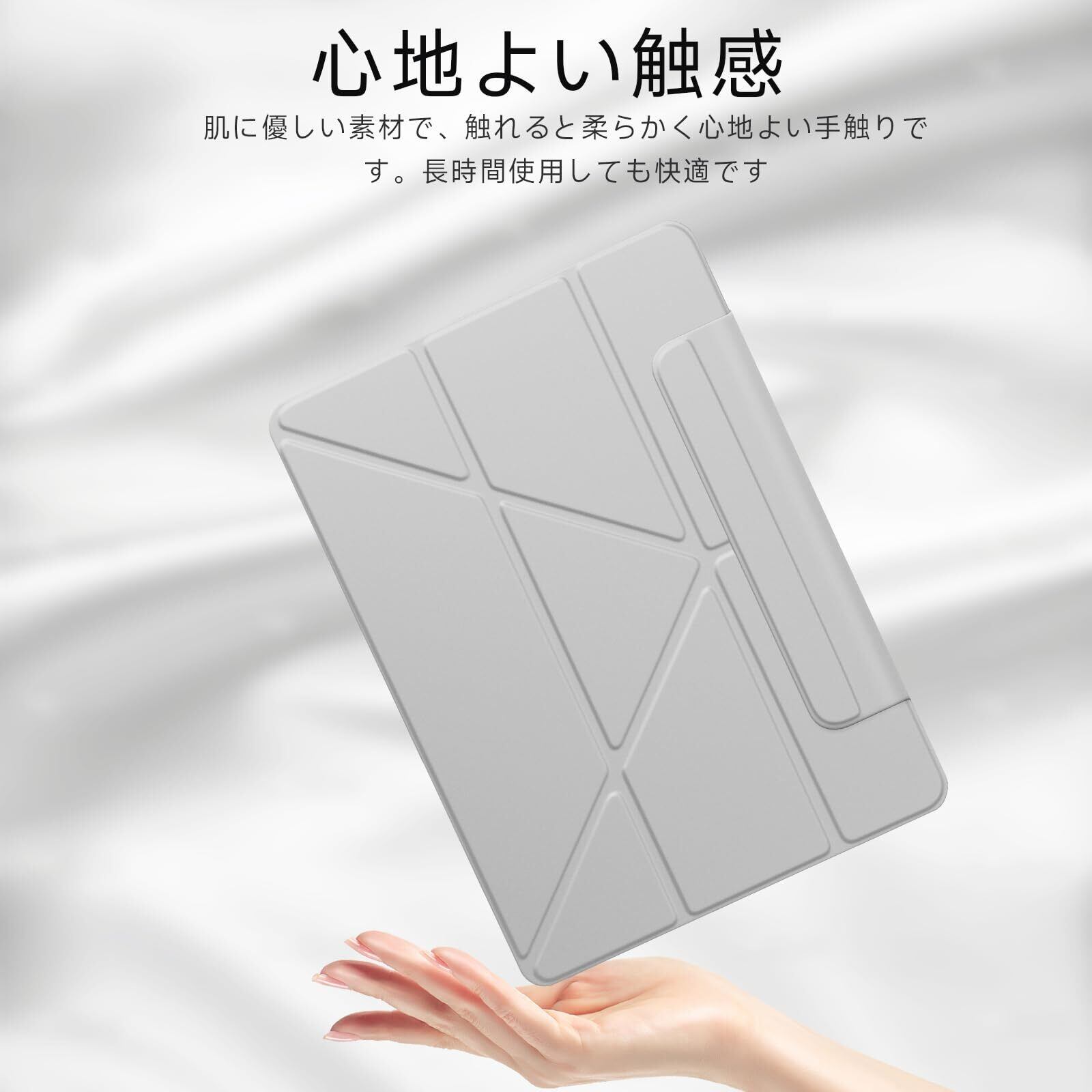 【2022最新】SANDUODD iPad Air 13インチ ケース M2/M3 (2024/2025) iPad Pro 12.9インチ ケース 第6/5/4世代(2022/2021/2020)通用 横置&縦置 角度調整可能 三角形スタンド 強力マグネット吸着 Pencil対応 極薄 軽量 オートスリープ/ウェイク対応 (ライトグレー) | gsmshop