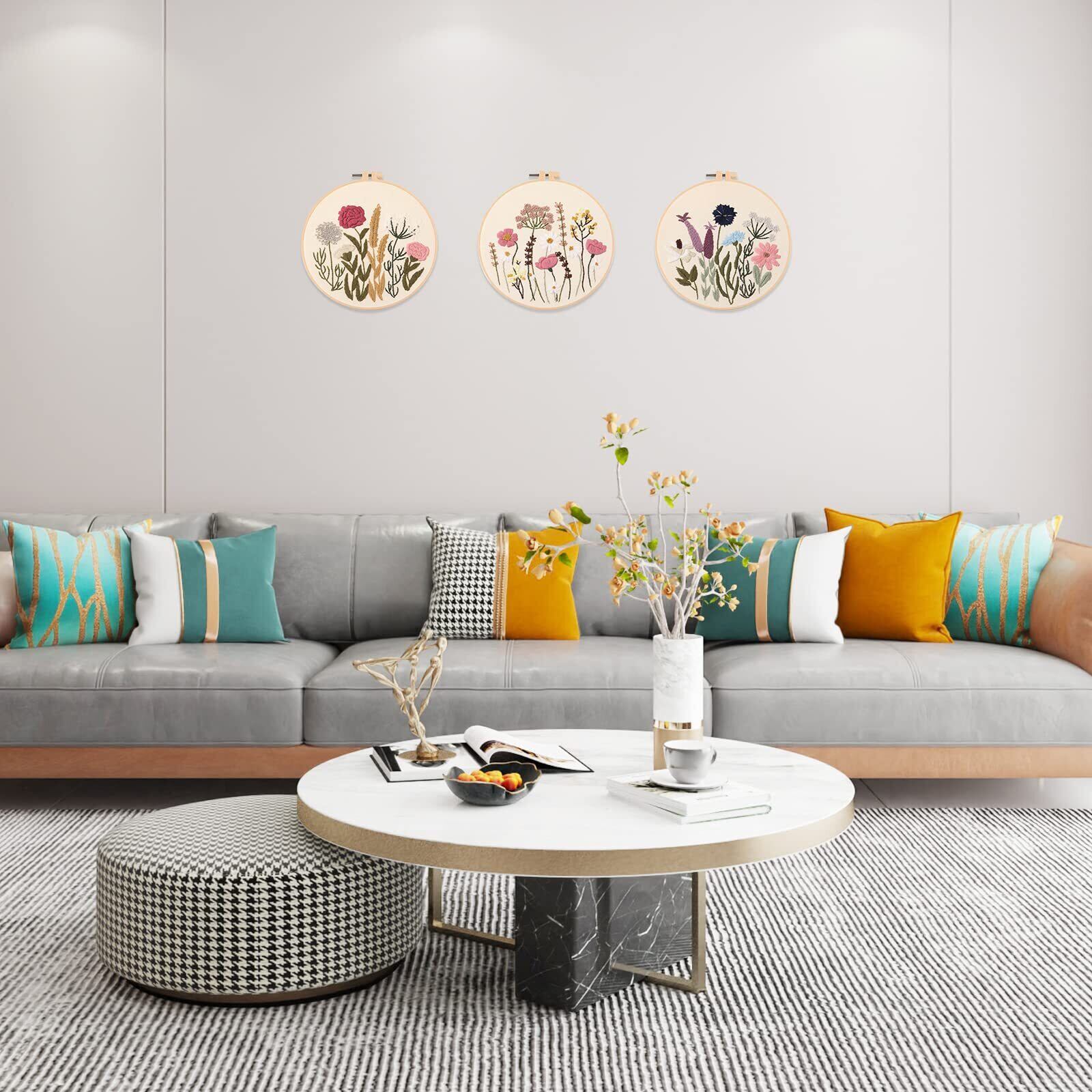 【数量限定】ALLMIRA 刺繍キット 初心者 セット ししゅうキット 刺しゅう クロスステッチ 手作り DIY刺繍工具 刺繍 枠 20CM1本 刺繍糸 刺繍用布1枚 刺繍針2本 英語説明書付き (フラワーB 3個入) | gsmshop