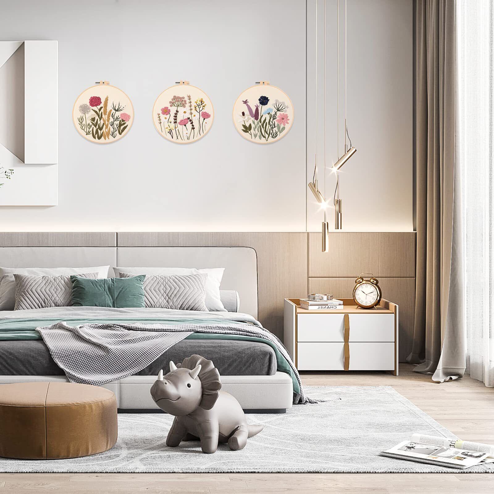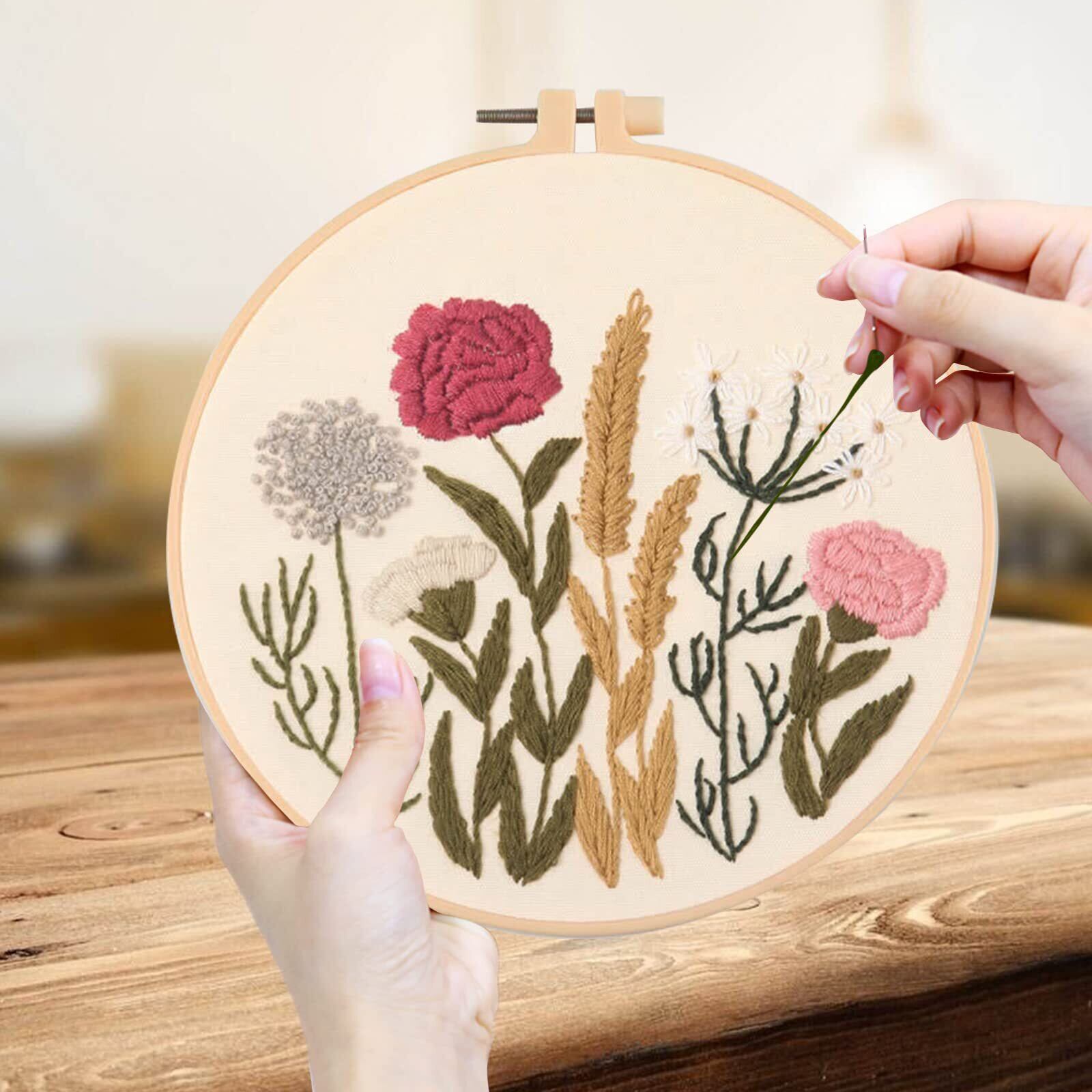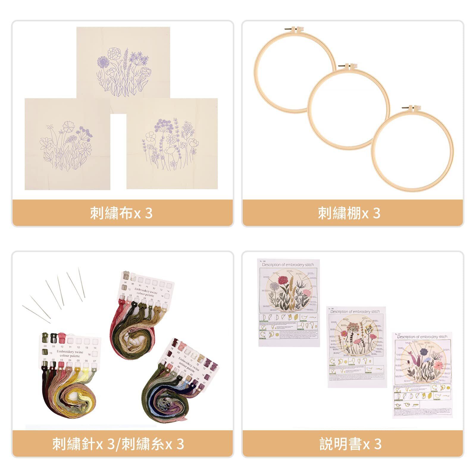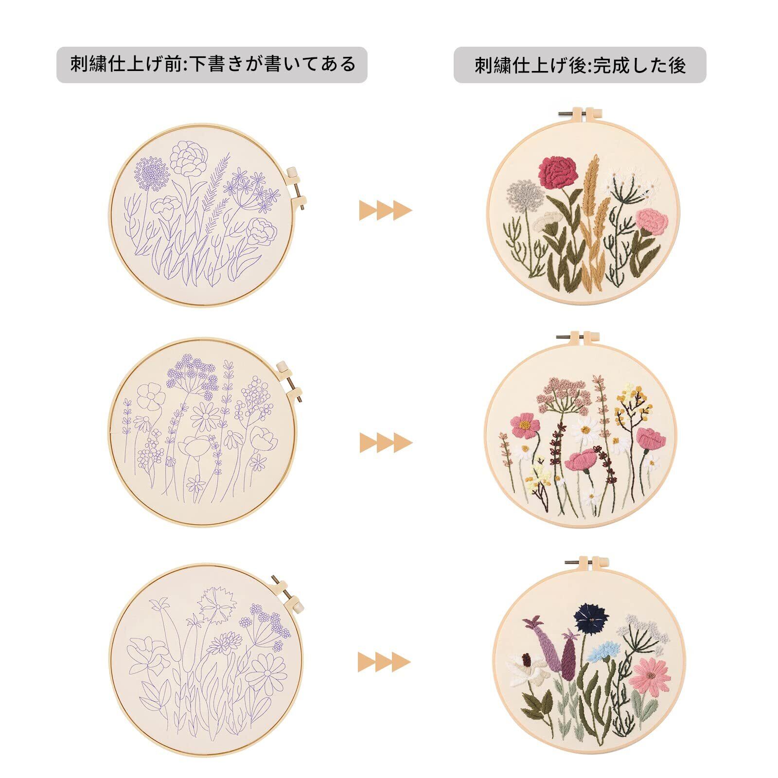 ALLMIRA 刺繍キット 初心者 セット ししゅうキット 刺しゅう クロスステッチ 手作り DIY刺繍工具 刺繍 枠 20CM1本 刺繍糸 刺繍用布1枚 刺繍針2本 英語説明書付き (フラワーB 3個入)