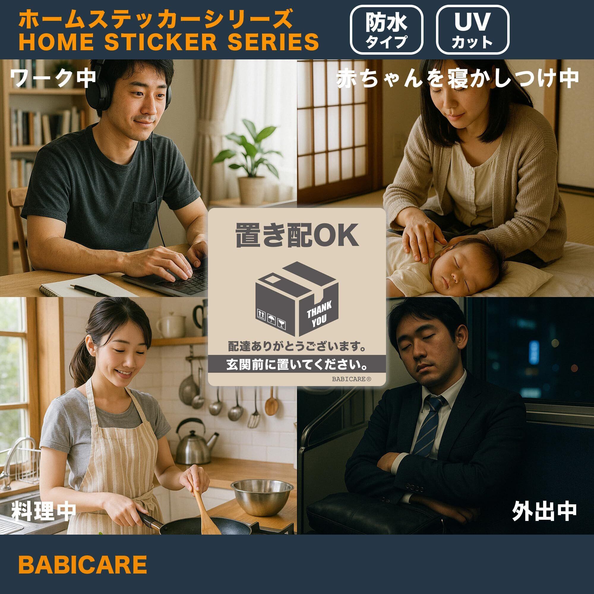 【在庫セール】【BABICARE】日本製 置き配OK 玄関前に置いて ステッカー シール プラスチック製 高耐候/防水/耐光/UVカット/ 80X80mm 賃貸住宅 賃貸マンション・アパート (グレー) | gsmshop