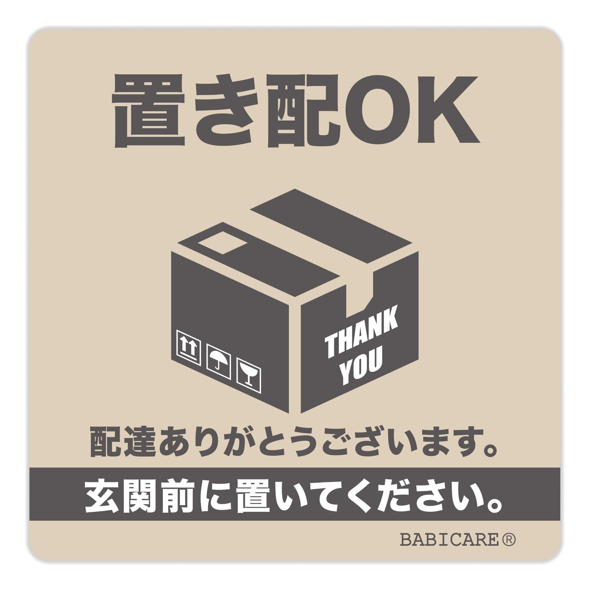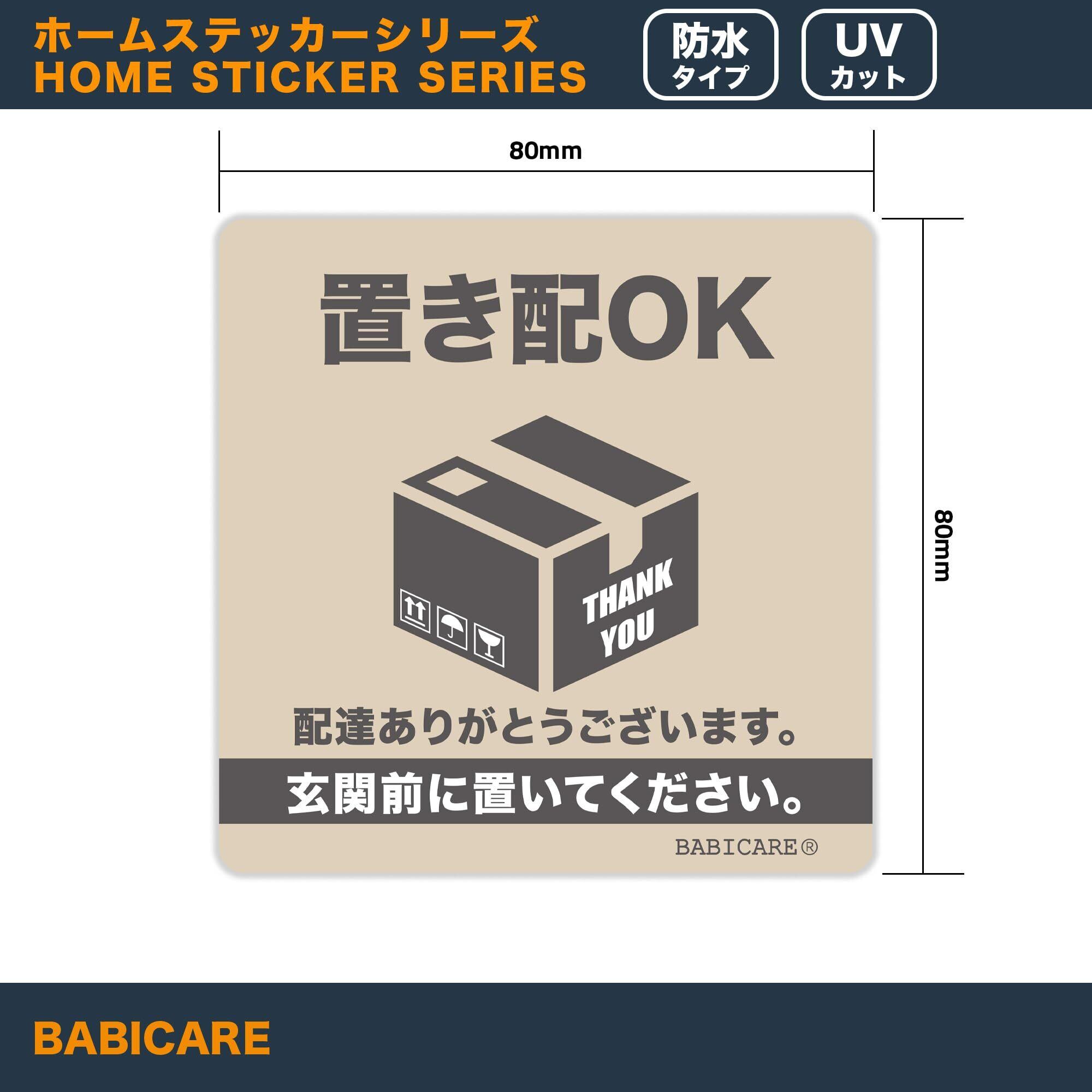 【BABICARE】日本製 置き配OK 玄関前に置いて ステッカー シール プラスチック製 高耐候/防水/耐光/UVカット/ 80X80mm 賃貸住宅 賃貸マンション・アパート (グレー)