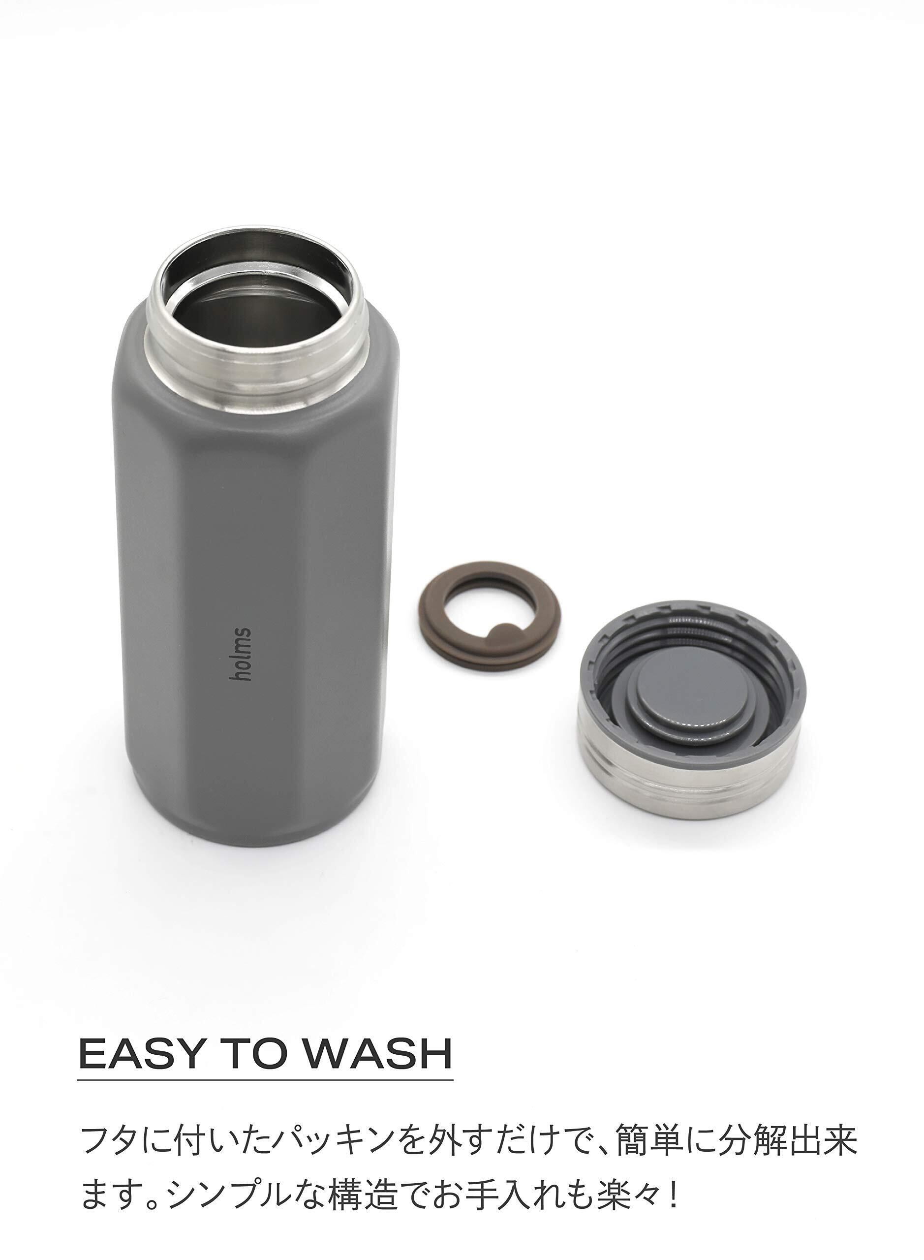 主材質:[内びん]ステンレス鋼、[胴部]ステンレス鋼(ポリエステル樹脂塗装加工)、[フタ]ステンレス鋼・ポリプロピレン、[パッキン]シリコーンゴム、[ホルダーセット]ポリエステル・亜鉛合金