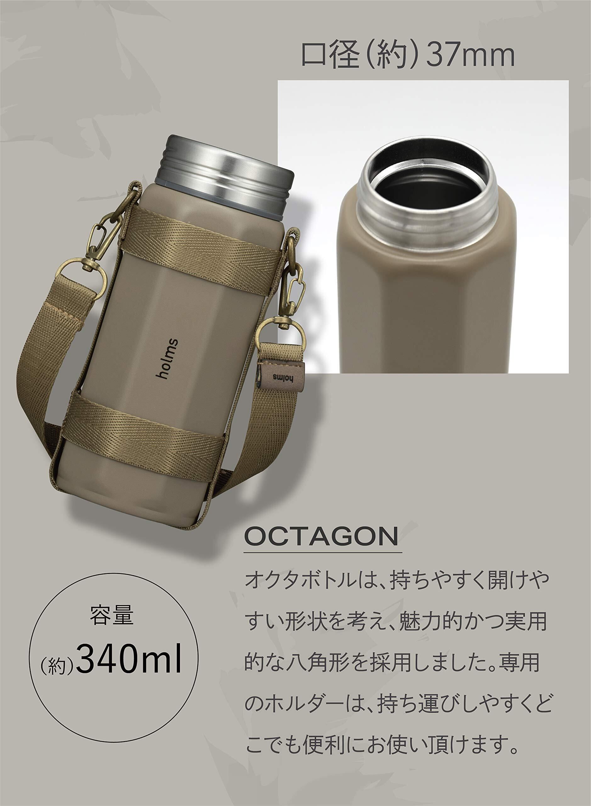 シービージャパン(CB JAPAN) 水筒 ベージュ 340ml 直飲み 真空断熱 ステンレスボトル 専用ホルダー付き オクタボトル holms