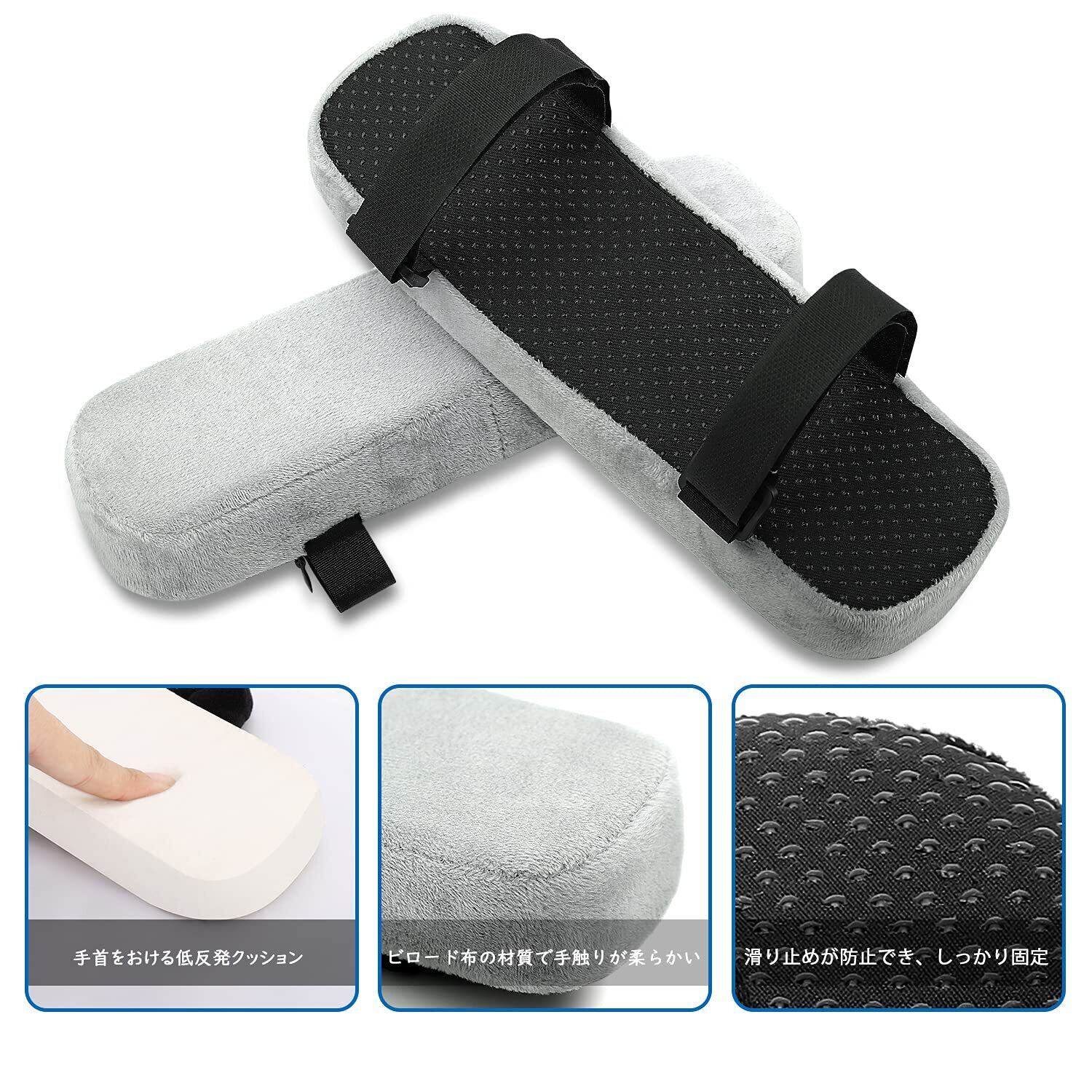 【特価セール】肘掛けクッション アームレストクッション Dadanism ひじ掛け用クッション 低反発 形状記憶フォーム製 椅子アームクッション 腕置き ジックテープ固定 腕疲れ軽減 肘パーツ・肘掛けカバー 座椅子 オフィスチェア 車チェア対応 2個セット グレー | gsmshop