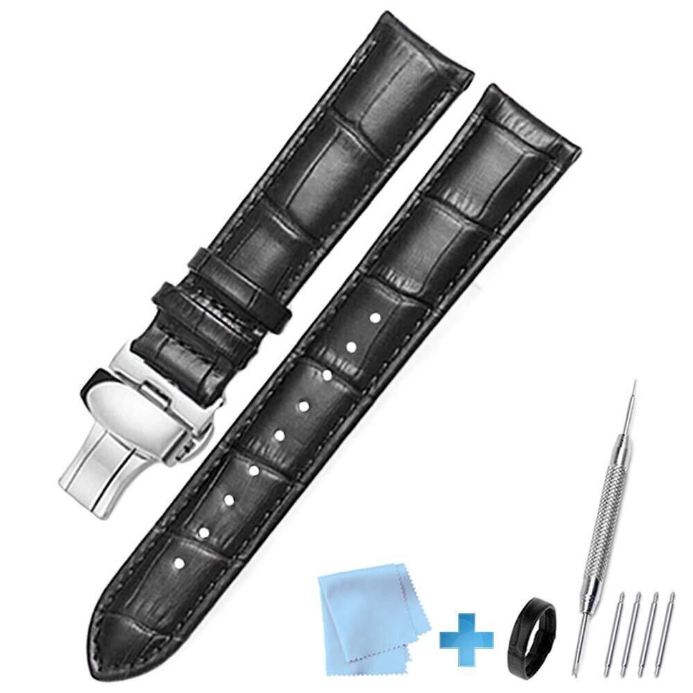 [Sea Sha] PU革時計バンド 腕時計ベルト20mm/22mm/24mm 交換ベルト Dバックル 防水 防汗 (ブラック, ハンドラグ幅:22mm)