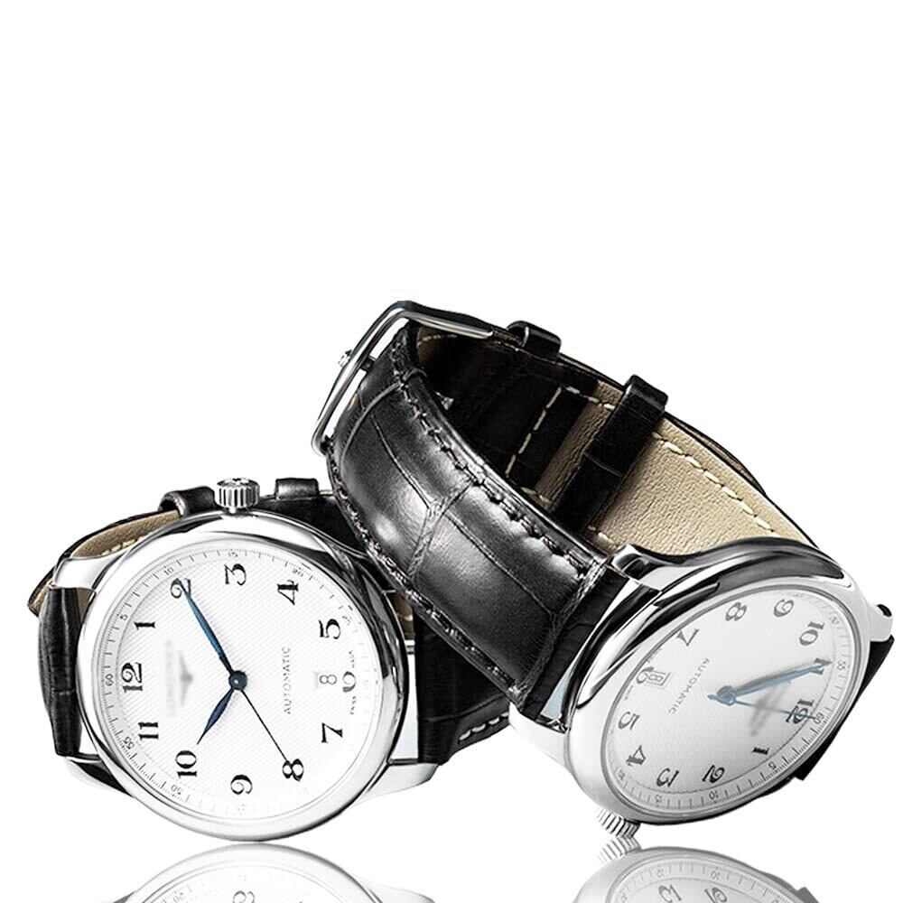 「お洒落な外観」ステンレス製自動Dバックルは装着・脱着が簡単にできるスライド式です、両側のボタンを押すと、尾錠は自動的に弾け開けます。Dバックルを使うことにより、ベルト穴に金具を通すと起こるベルトの傷みが軽減され、長くお使い頂けます。また、一度使うと着脱時に非常に便利で、腕時計の着脱が楽です。