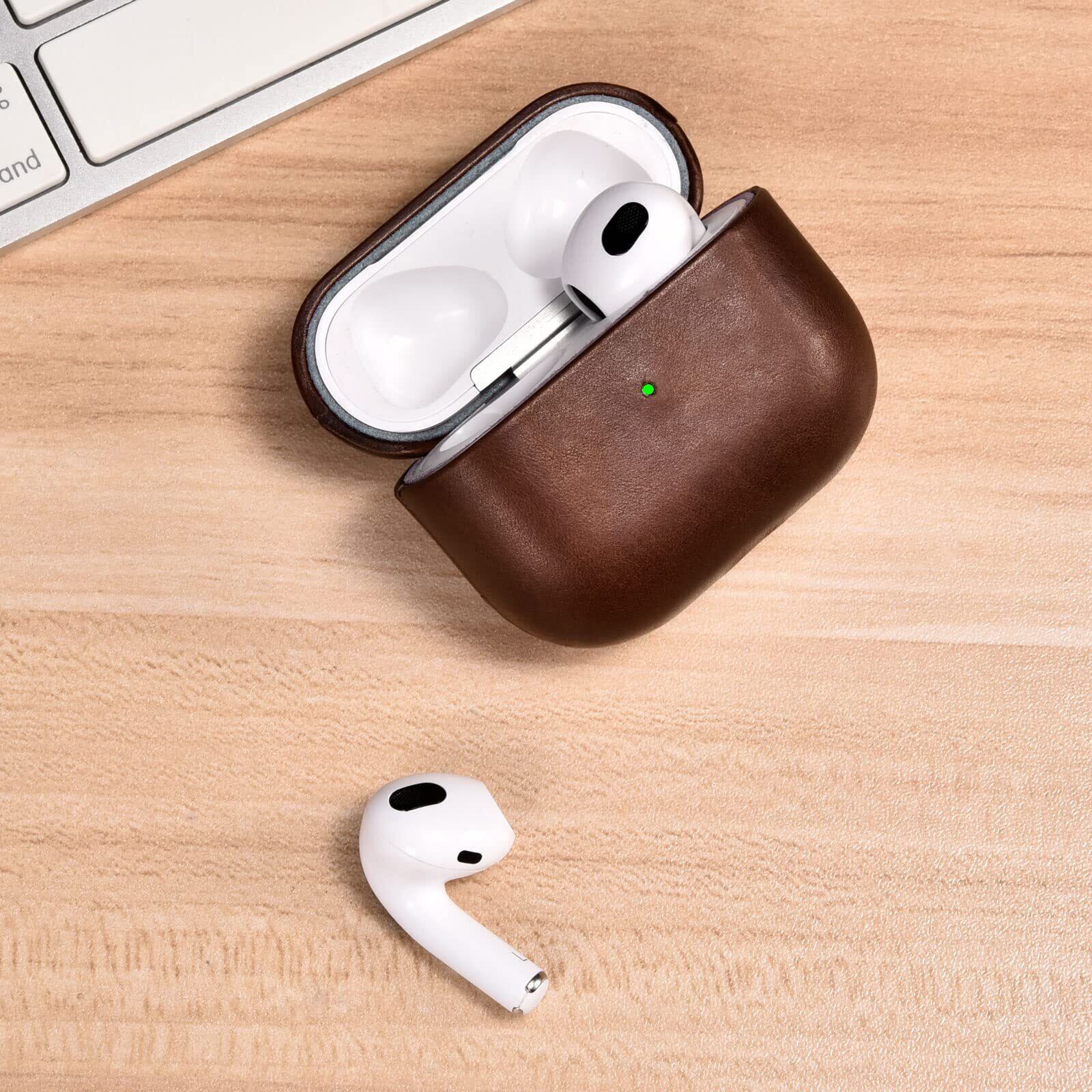 【高品質のレザー素材】AirPods Pro レザーケース高品質の革素材を使用し、優れた仕上がり、耐久性と高品質。 柔らかい裏地はAirPods Proの元のデザインを破壊しません。革素材は滑らかさに優れています、指紋汚れを防止し、AirPods Proをキズや汚れからしっかり守ってくれます。