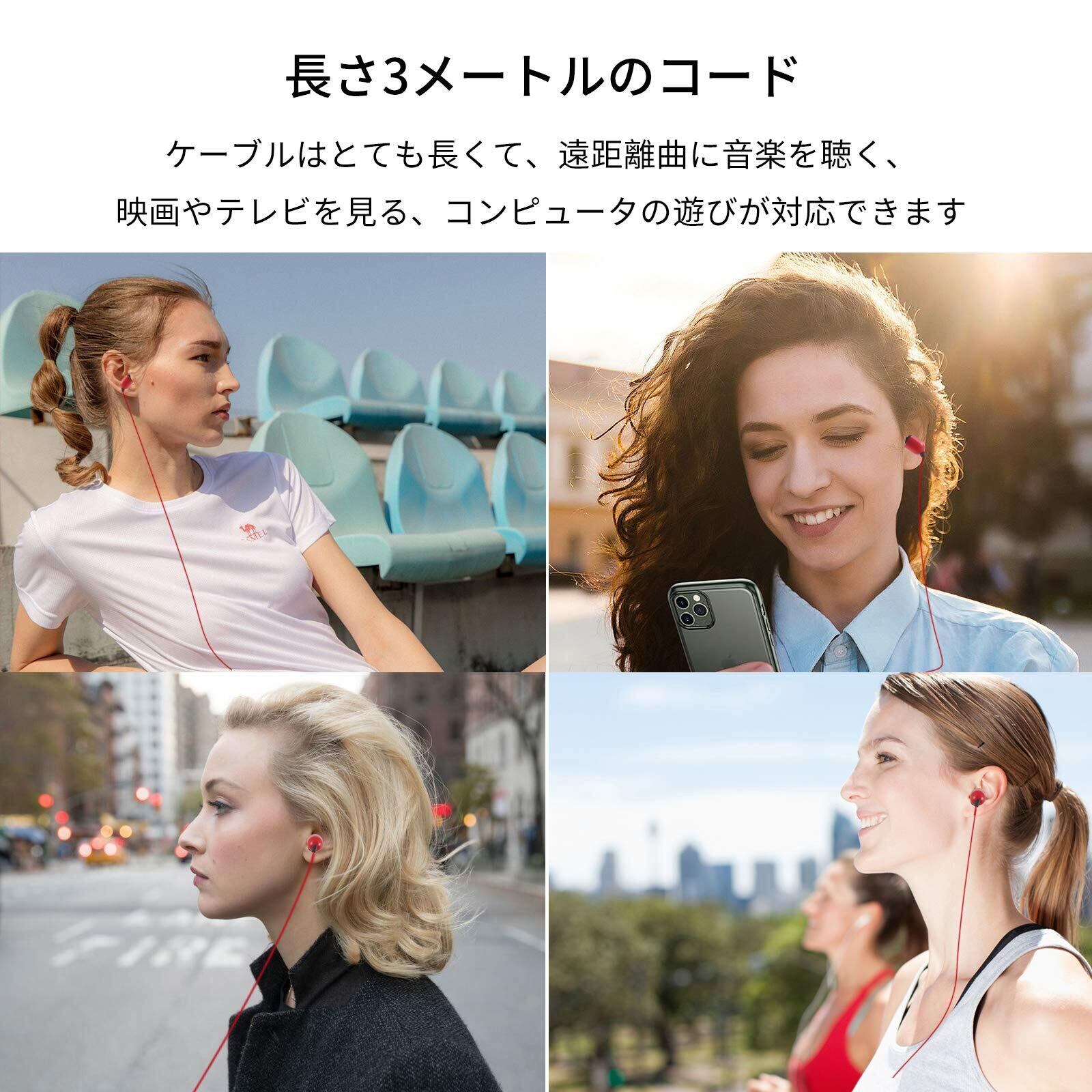 断線しにくい:丸型のコードを採用するので耐久性があり、断線しにくいです。高品質の線材を使用し、絡みにくく、擦れる際に響いてくるタッチノイズもかなり低減されています。当イヤホンの全長は300cmで、延長コードが要りません。