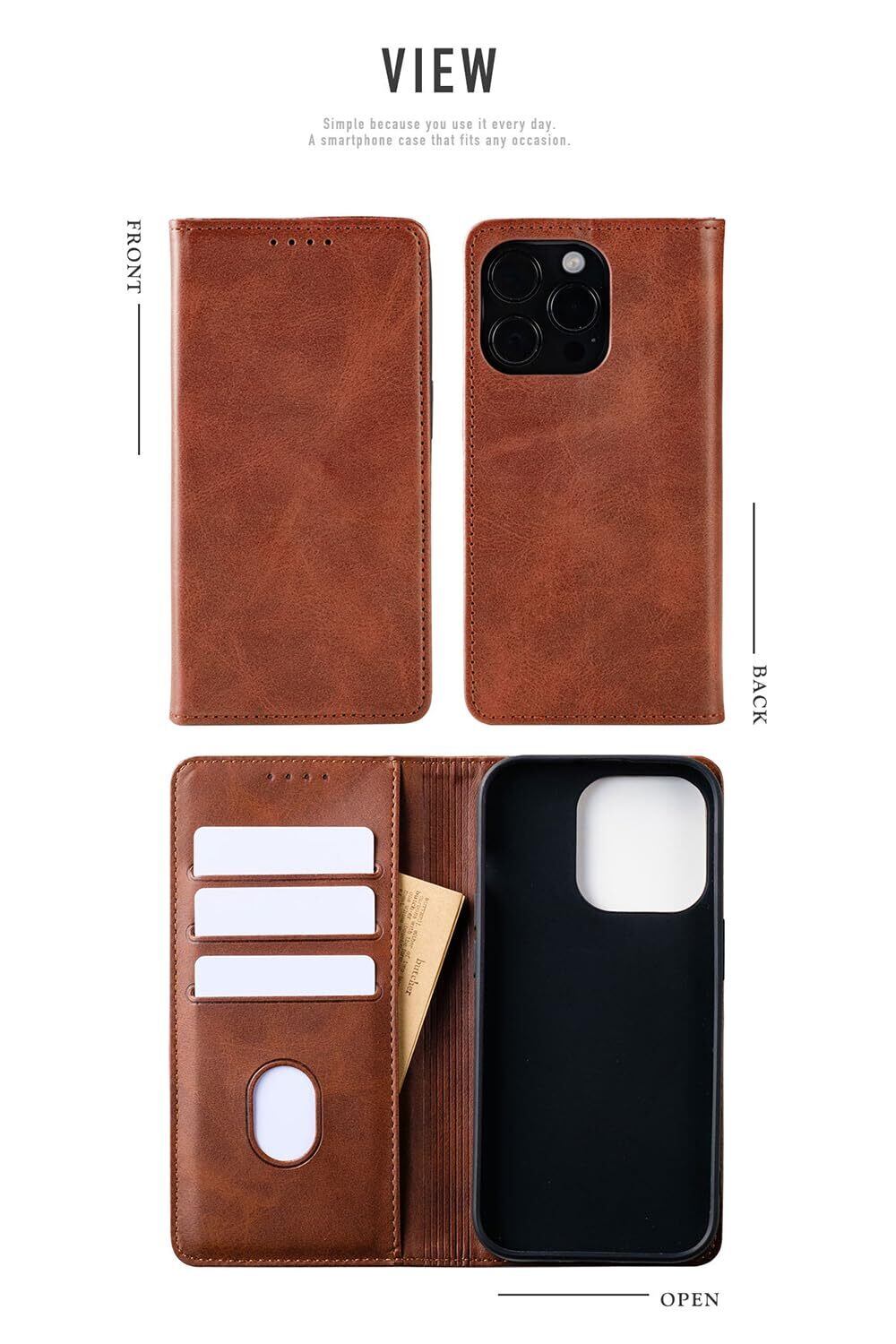 【使いやすさとスマホ保護を徹底した、高級感のある手帳型ケース】カード収納やスタンド機能で日常使いに便利なだけでなく、スマホやカメラレンズを衝撃や傷から保護するシンプルなデザインと上質な素材であらゆるシーンに適合する洗練されたスタイルを演出できます。