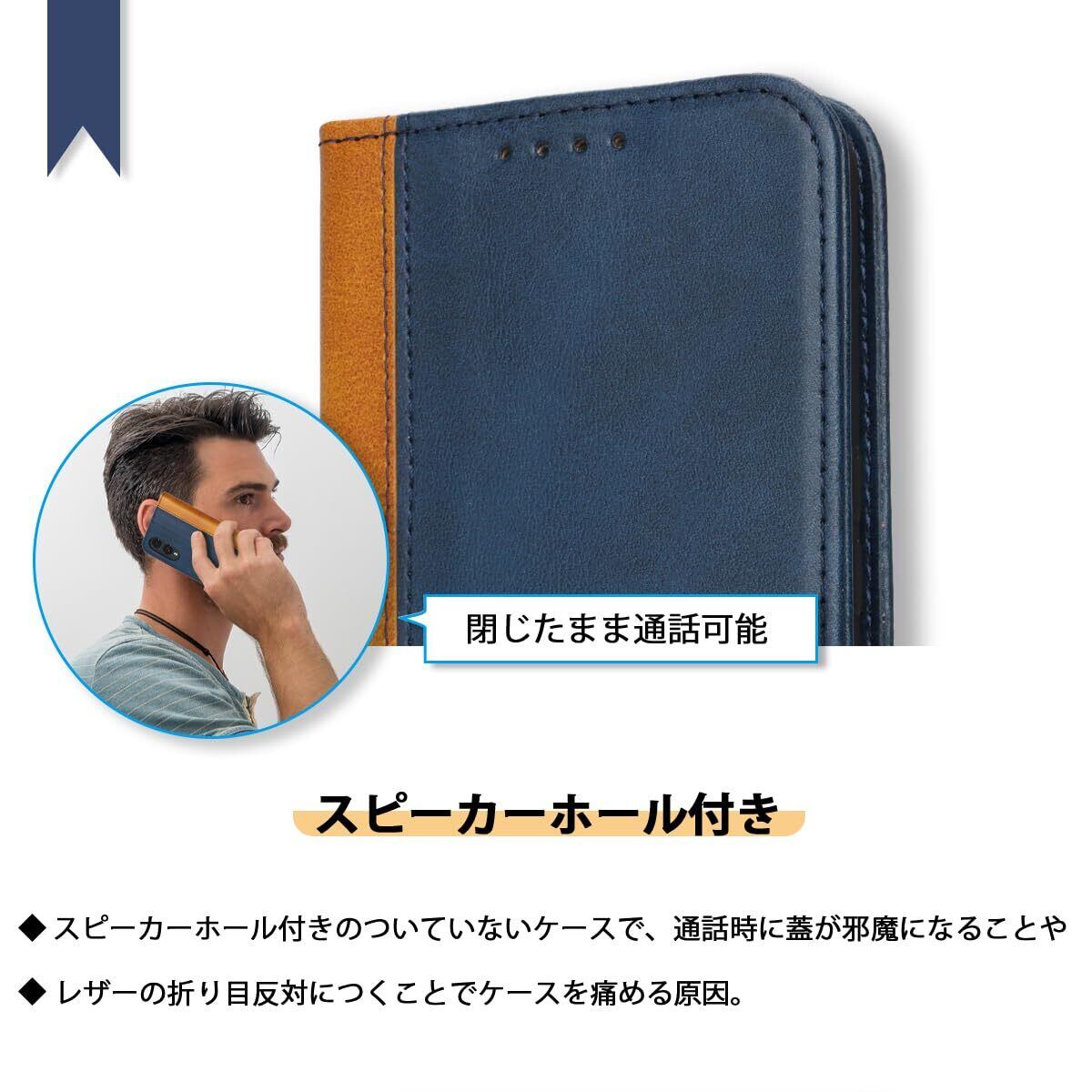 Havaya Arrows Be3 F-02L ケース Arrows Be3 ケース Fujitsu 富士通 スマホケース アローズ be3 F02l 手帳型 docomo 耐衝撃 カバー マグネット式 カード収納 スタンド機能 レザー-ブルー+イエロー