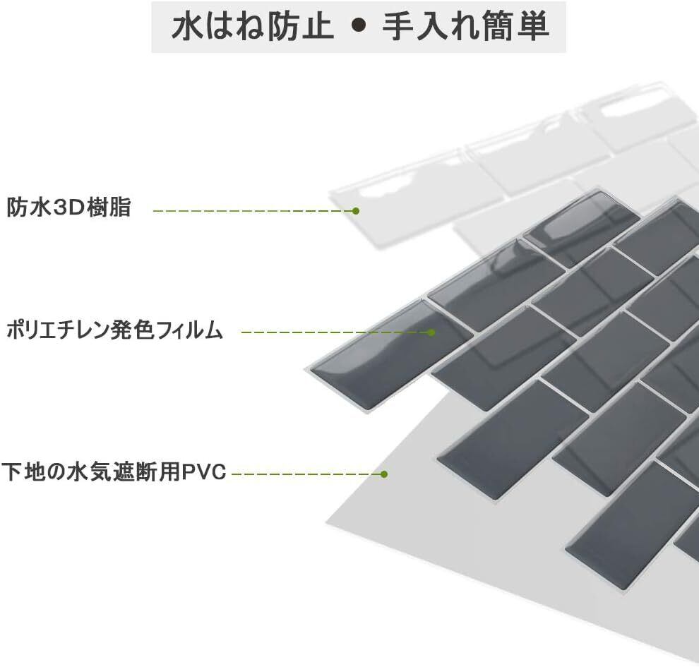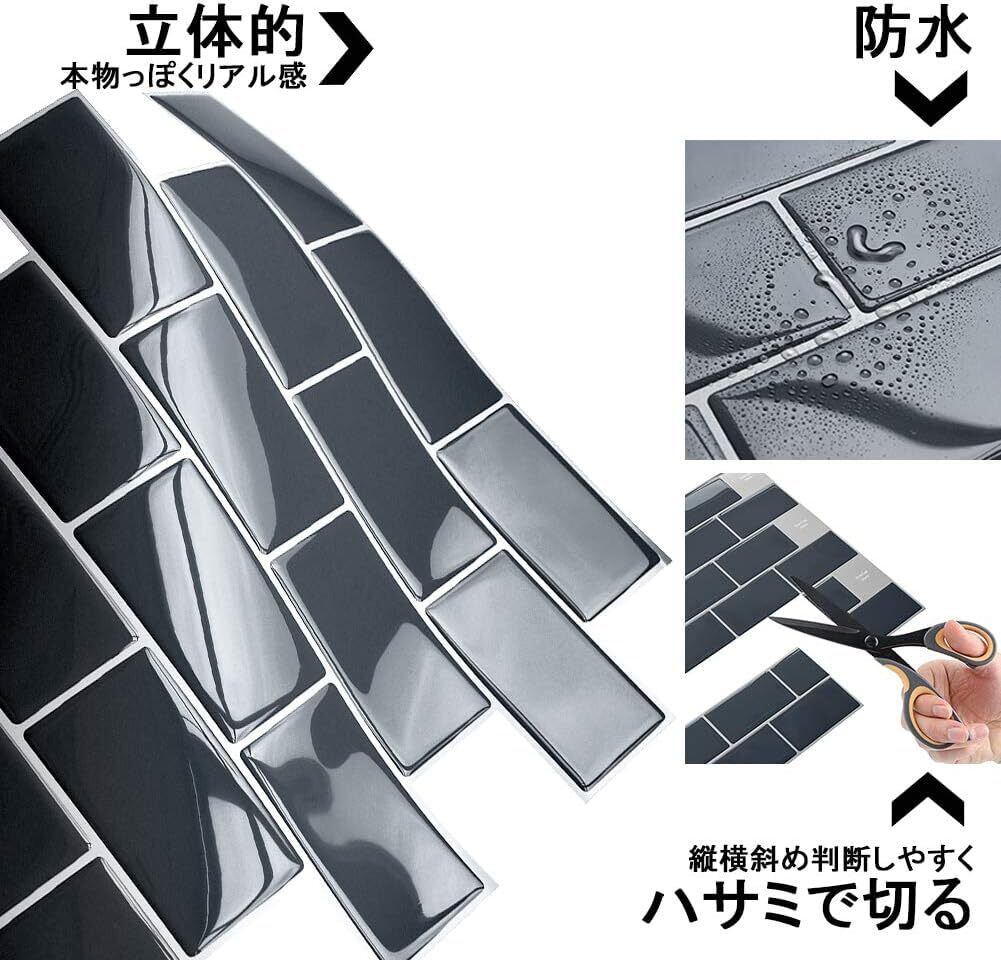 APSOONSELL 立体 タイルシール 3D 壁紙 タイル 30.5*30.5cm 【4枚セット】 防水 耐熱 リフォームシート 洗面所 キッチン トイレ 凹凸 壁紙 シール 賃貸OK グレー