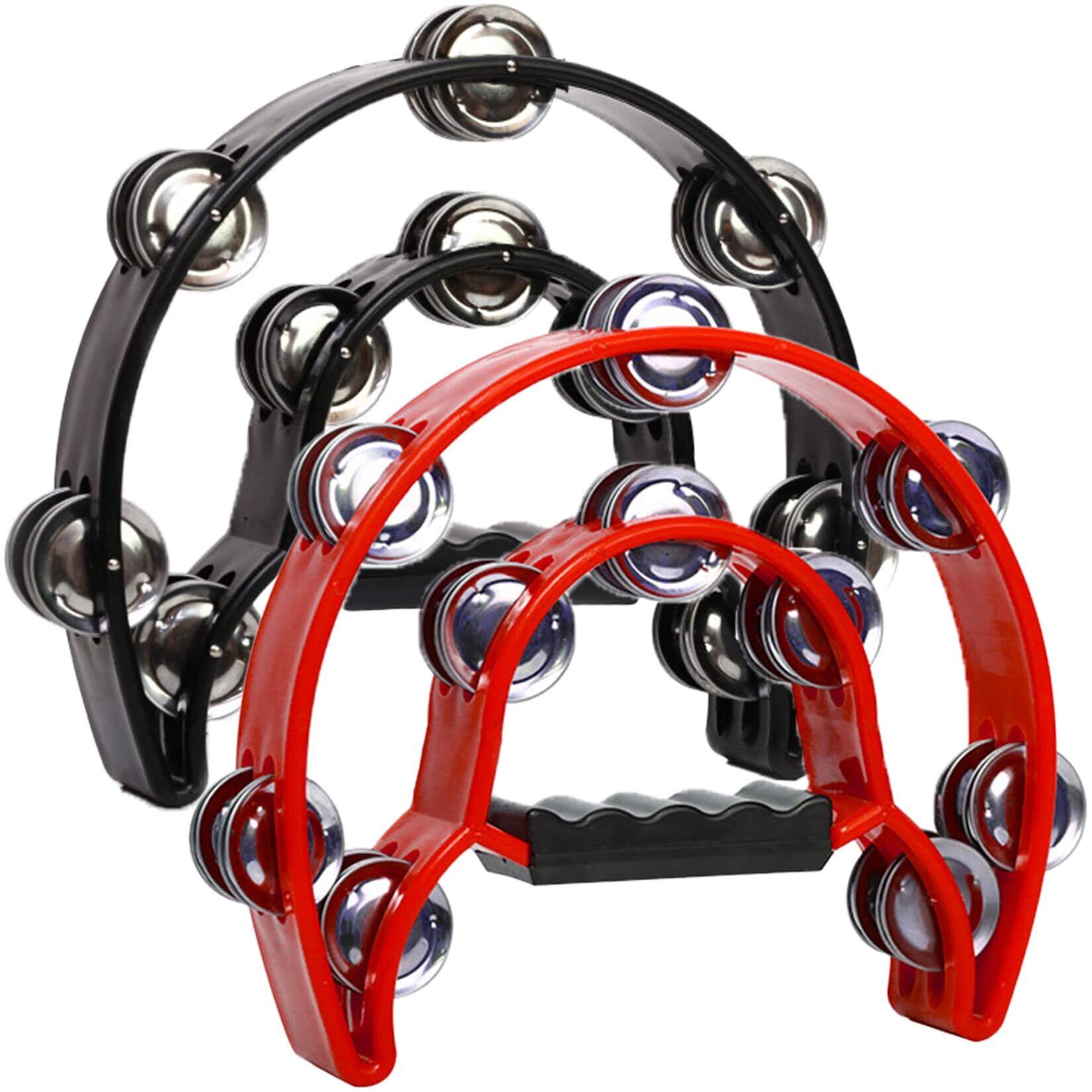 SHINENISM タンバリン 演奏 楽器 パーカッション カラオケ 盛り上げ 半円型 2個 セット (ブラック レッド)