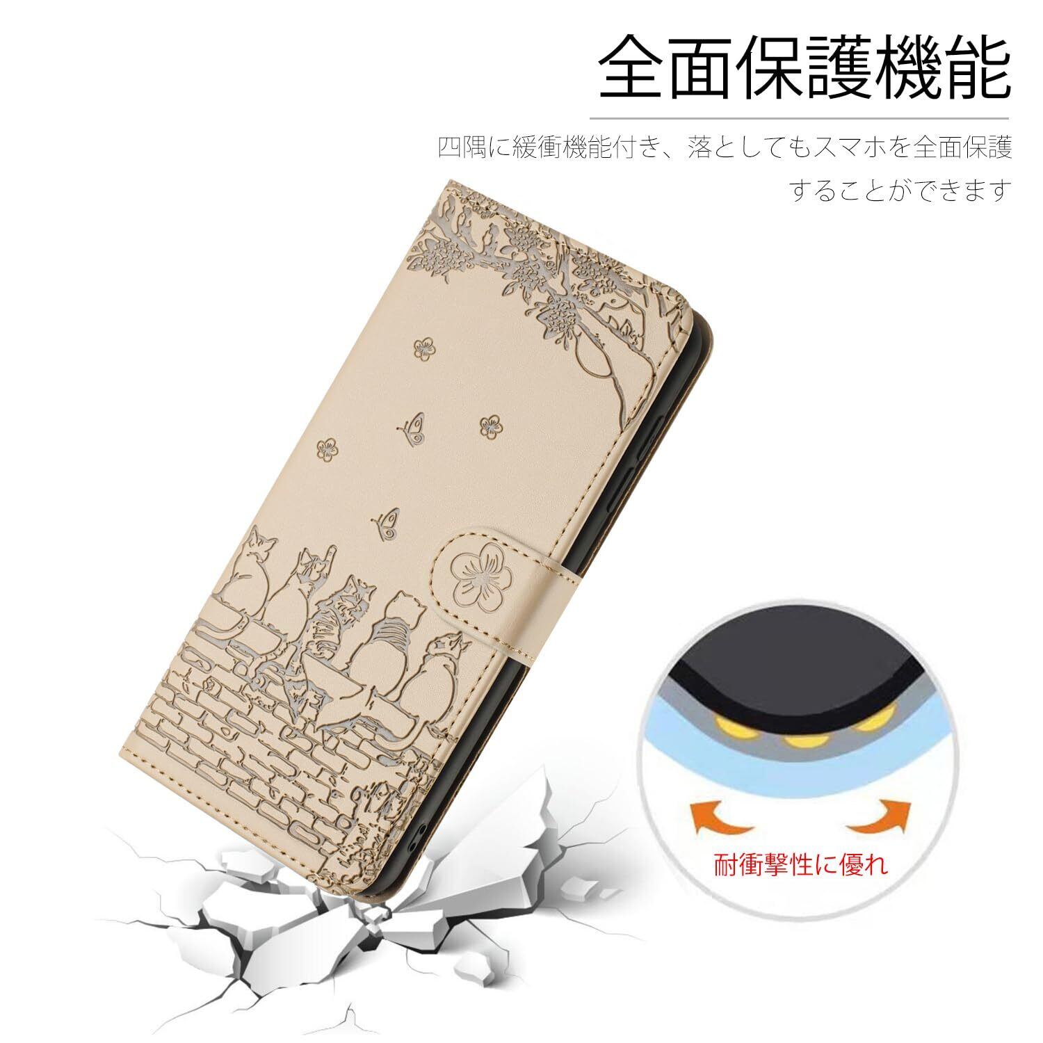 【数量限定】iphone12 ケース 手帳型 おしゃれ iphone12pro ケース 手帳型 人気 アイフォン12 ケース手帳型 かわいい猫と美しい桜柄 あいふぉん12ケース手帳型 耐衝撃 アイフォン12 プロケース 手帳型 PUレザー 本革 あいふぉん12プロ/ いphone12/ アイホン12プロ ケース 手帳型 スマホケース カバー カード収納 マグネット式 スタンド機能【6.1インチ】オフホワイト | gsmshop