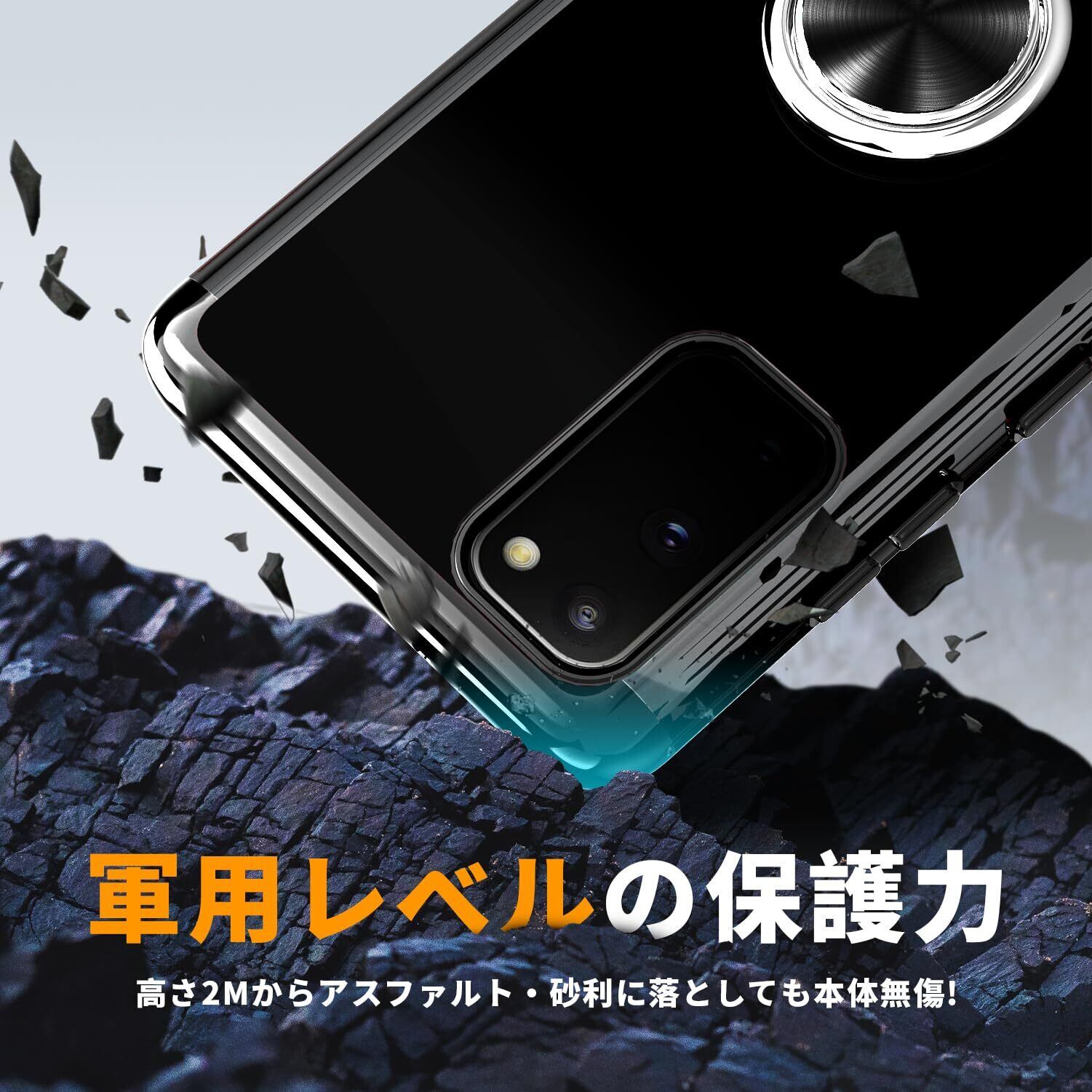 【2022最新】Xperia 1 II ケース リング クリア 耐衝撃 SO-51A SOG01 カバー 透明 TPU 軽量 薄型 ストラップホール付き 黄変防止 360°回転 車載ホルダー ブラック黒 2-Xp1 ii-01 | gsmshop