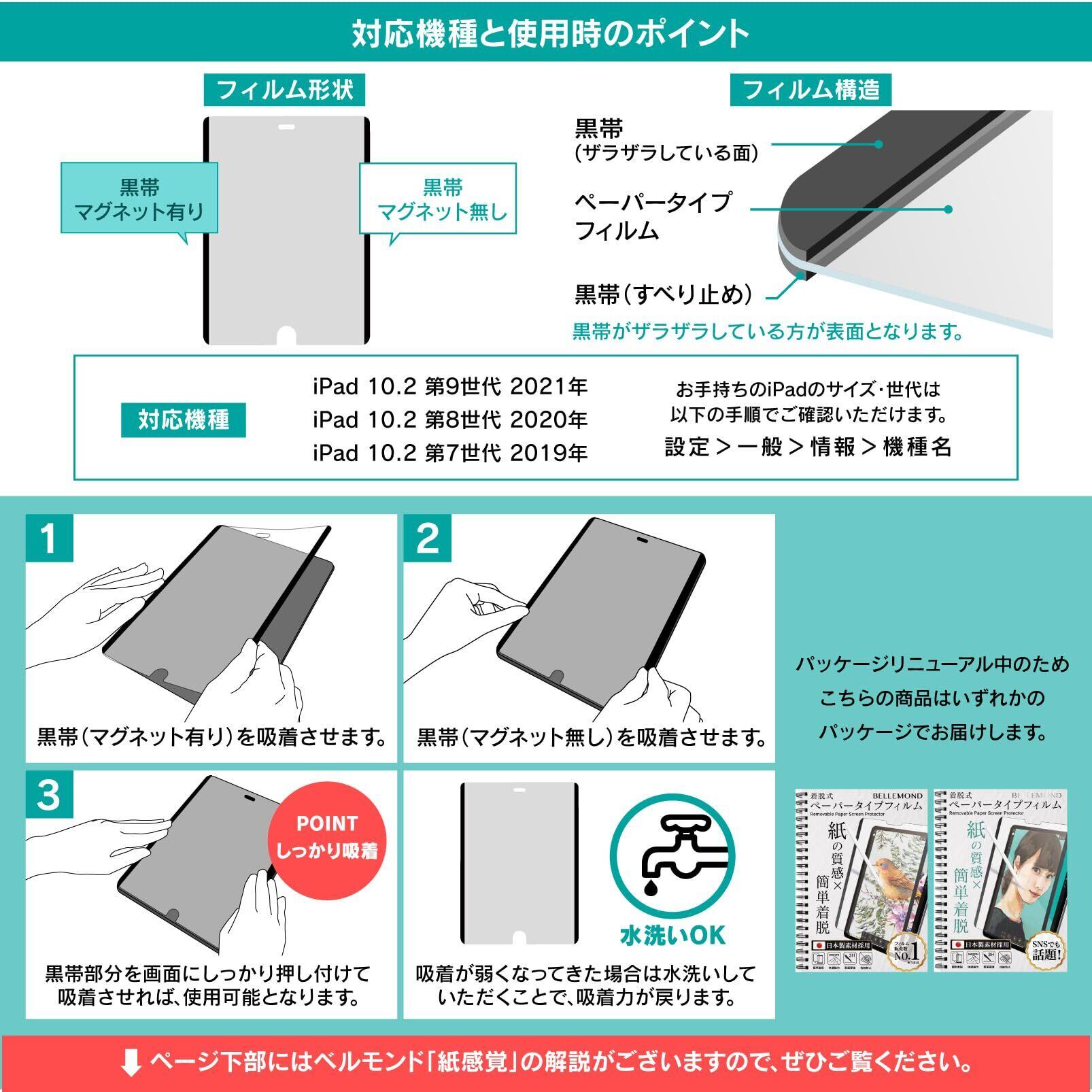 ベルモンド iPad 10.2 用 着脱式 ペーパータイプ フィルム マグネット タイプ | (第9世代 2021 / 第8世代 2020 / 第7世代 2019) | ケント紙タイプ 紙のような描き心地 保護フィルム BELLEMOND B0415