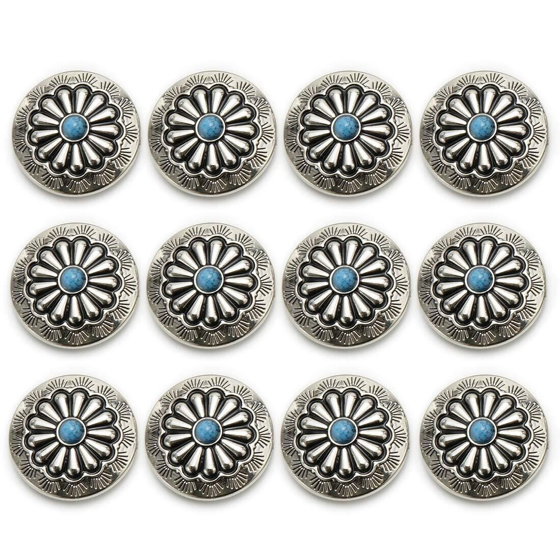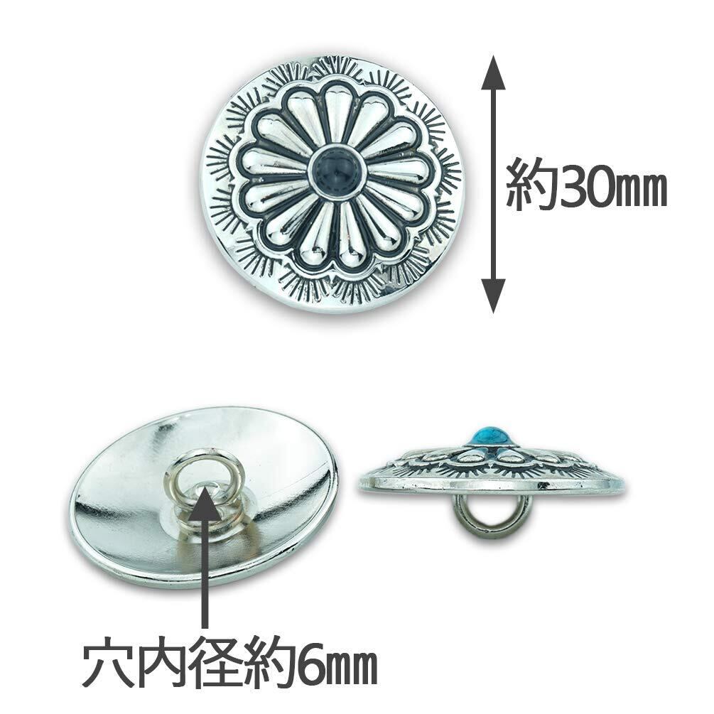 コンチョ ボタン 12個セット ターコイズ 30mm メタルボタン 足つき デージー柄 レザークラフト アクセサリー 手芸 (タイプA)