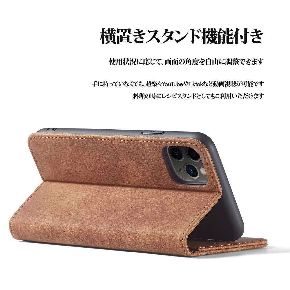 Panda Baby iPhone 11/11 Pro/11 Pro Max 手帳型ケース 本革に近い手触り (iPhone11, カーキ)