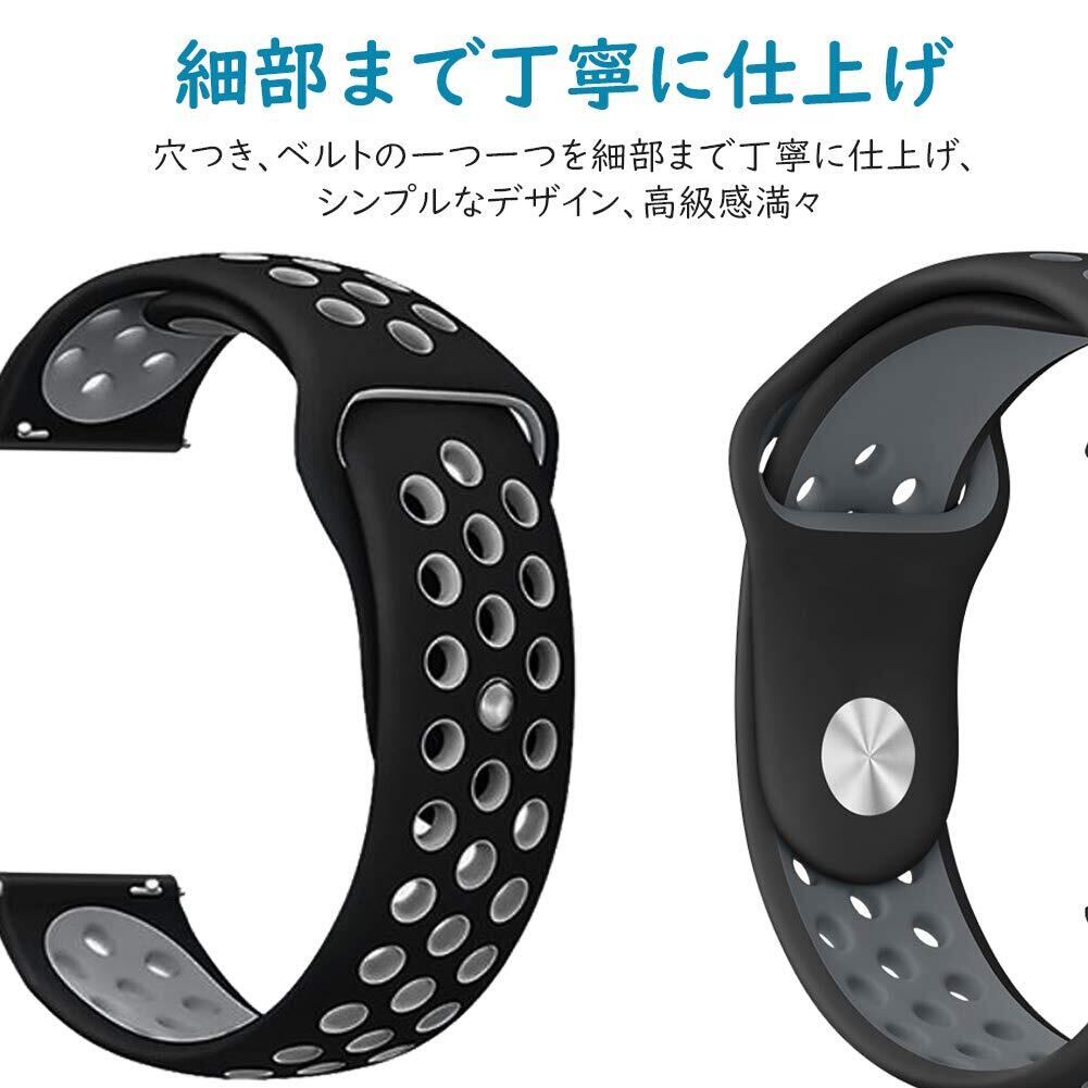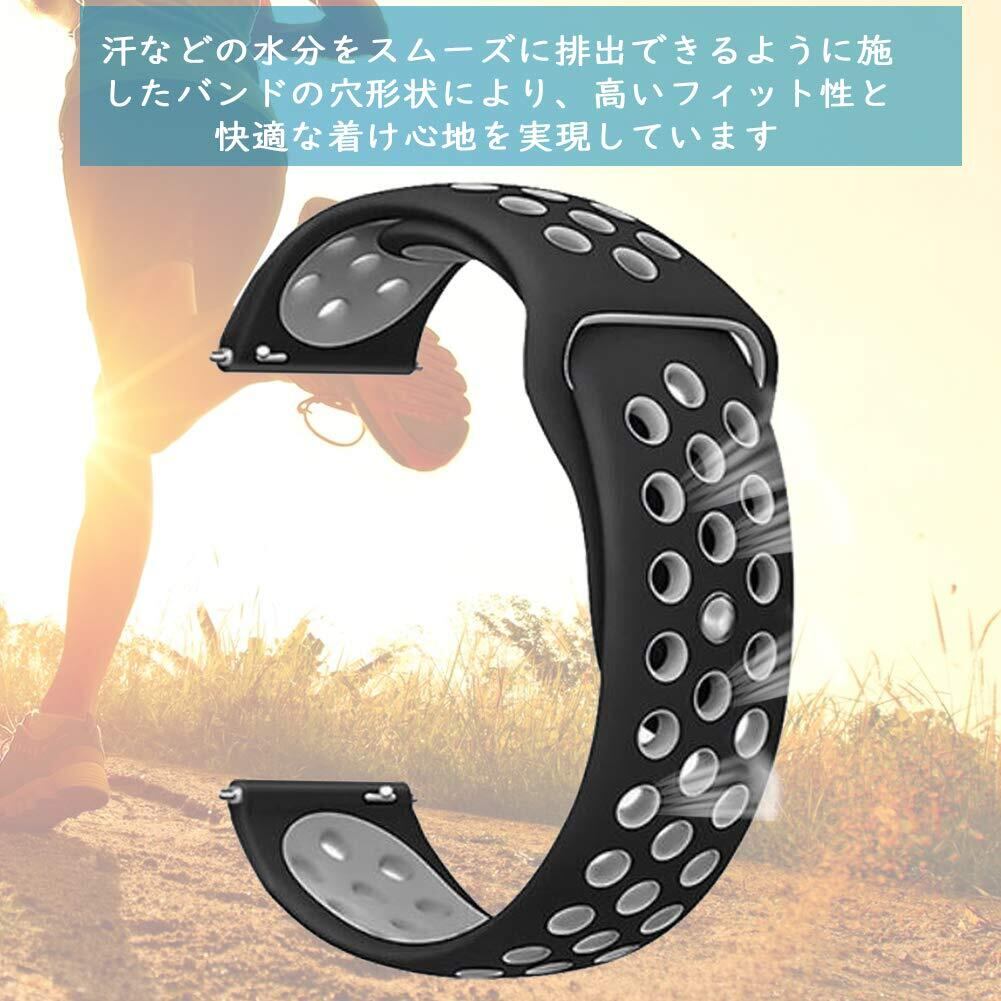 [Yoursea] スマートウォッチ交換用バンド 交換ベルト スポーツバンド レッドブラック 高級シリコンバンド 専用スポーツバンド 通気 汚れ防止 水洗い可 ストラップ ラバーベルト (Black-Gray)