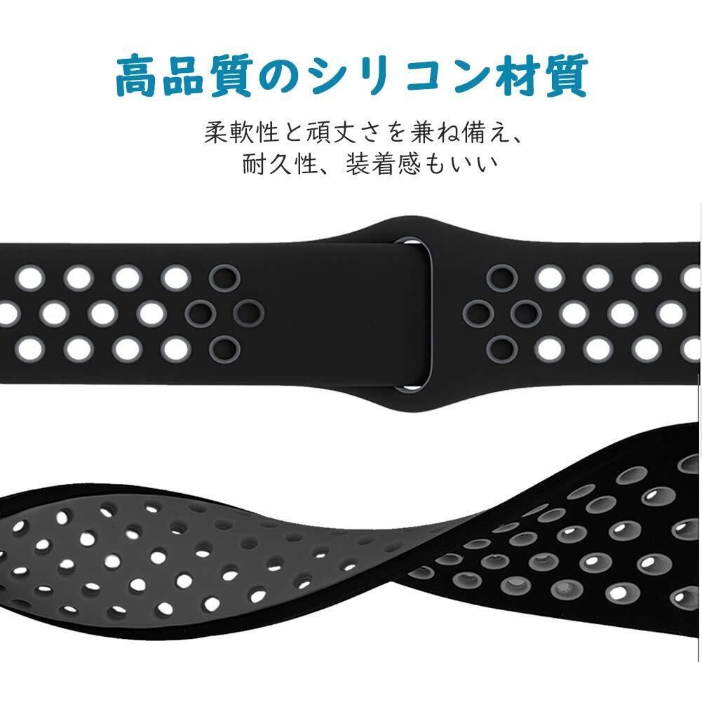 【材質】:高品質なシリコン素材を採用し、汚れにも強く、柔軟性と頑丈さを兼ね備えたバンドです。汗などの水分をスムーズに排出できるように施したバンドの穴形状により、高いフィット性と快適な着け心地を実現しています。