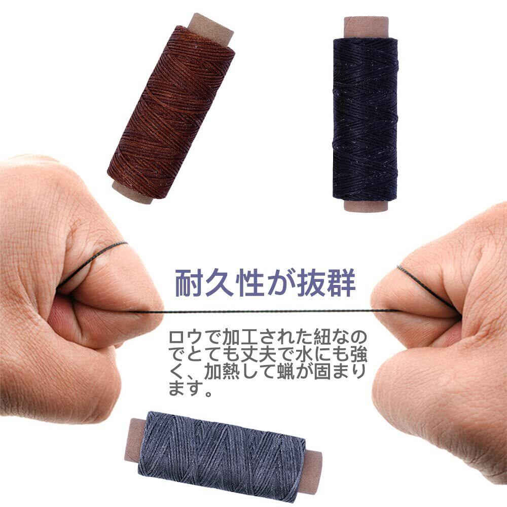 サムコス 蝋引き糸 0.8mm 6色 50m セット 革用 レザークラフト レザークラフト糸 手縫い針 指守り輪 縫い糸用針 ロウ引き 革 DIY 手芸 初心者用 (15)