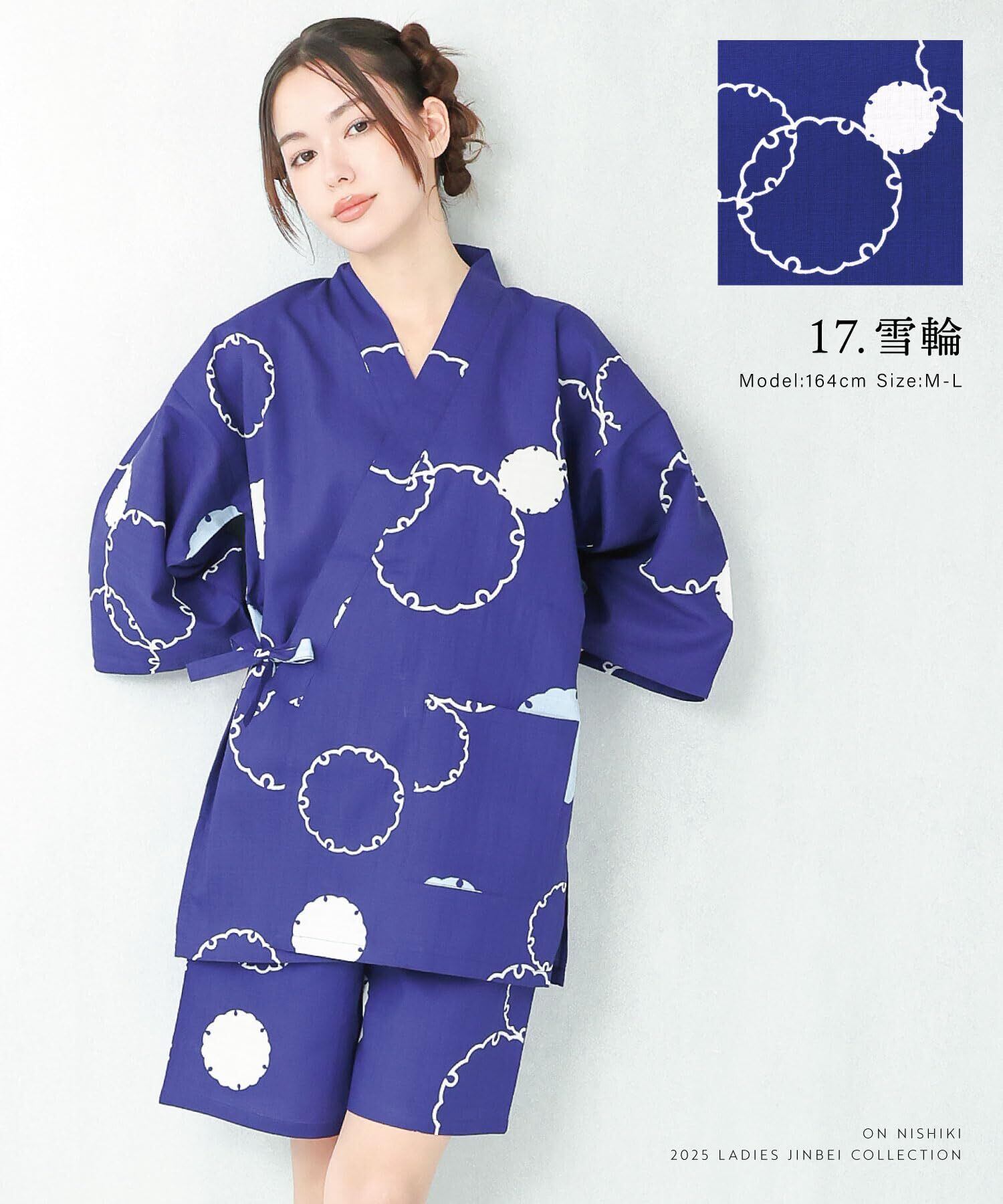 [ON NISHIKI] レディース 甚平 上下セット 綿100% 涼しい お祭り 花火大会 盆踊り ルームウェア 前開き 涼しい 吸汗 爽やか 花柄 和柄 M-L/L/LL/3L/4L