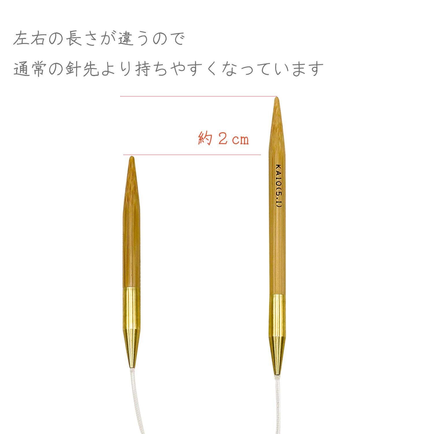 この輪針は左右の針先の長さが違っていて、僅か1cmの違いですがとても編み易く、持ちやすくなっています。