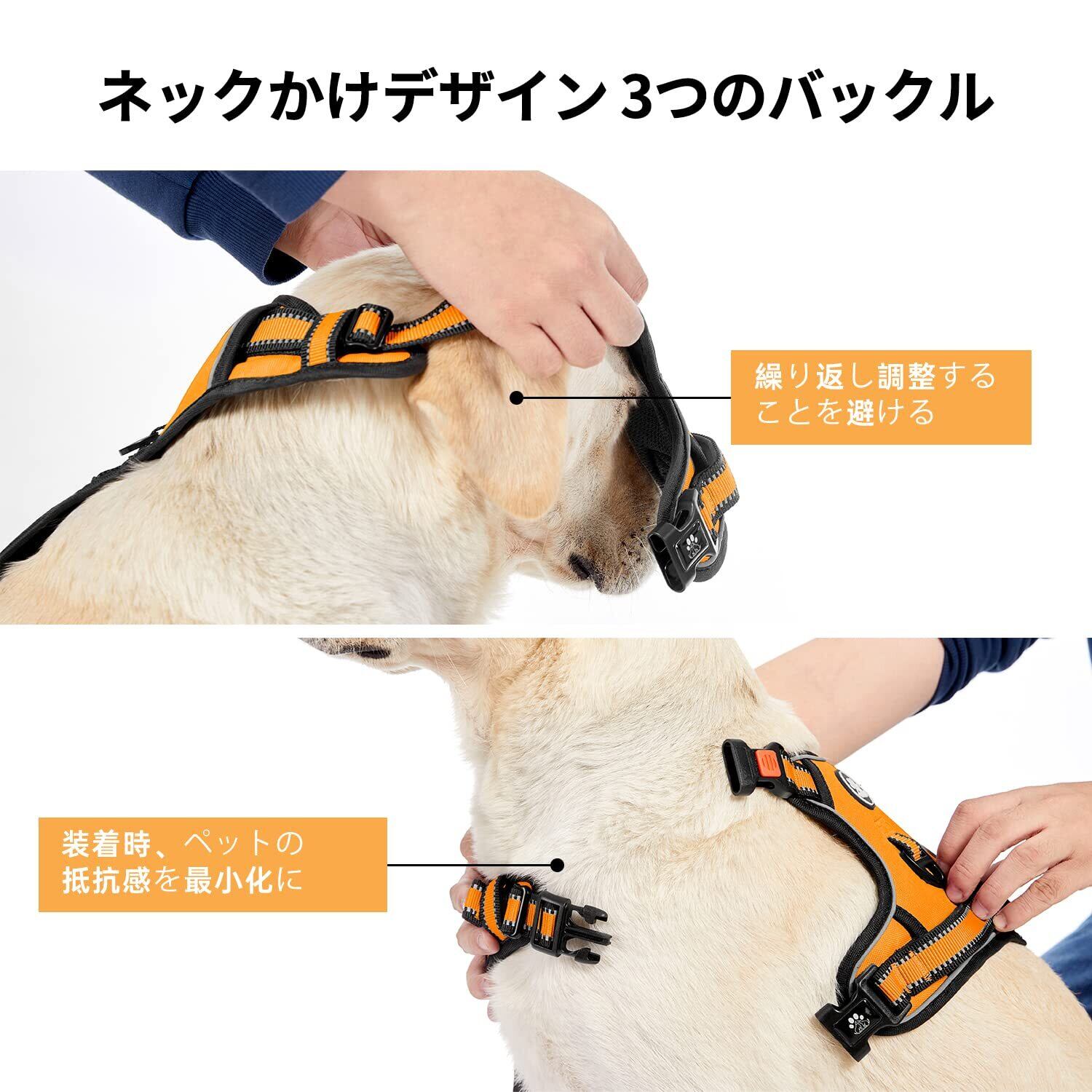 【犬に最適】様々な犬の体格を満足するために、XS、S、M、L、XL、五つのサイズが設計されました。小型犬・中型犬・大型犬でも、アウトドアのいろいろなシーンに応用可能。各部分の接続はとても頑固で、長時間に利用できるハーネスです。ご注意:購入する前に必ずご愛犬のサイズを測ってください。