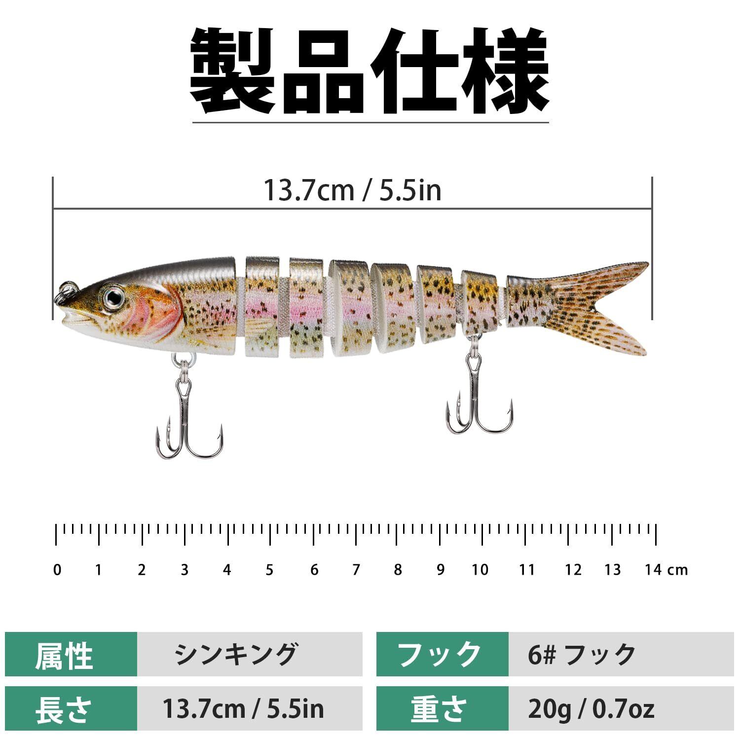 TRUSCEND【釣りルアー・8段ジョイント】このルアーはボディに合計8つのジョイントを備えたマルチジョイント設計を採用しており、水中での柔軟性が高く、より自然な泳ぎアクションを実現します。さらに、外側のコーティングによりベイトが生き生きとしているように見え、泳ぎと組み合わせることで、捕食性の魚からの攻撃をより多く引きつけ、魚を捕まえる可能性が高まります。